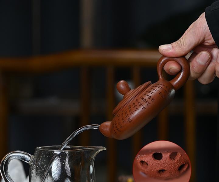 【泥料特點】砂土氣重,似淳實農民,日久使用,漸露鋒芒,養成變化,溫潤莊重。紫砂是壹種雙重氣孔結構的多孔性材質,氣孔微細,密度高。用紫砂壺沏茶,不失原味,且香不渙散,得茶之真香真味。紫砂使用越久,壺身色澤越發光亮照人,氣韻溫雅。紫砂壺長久使用器身會因撫摸擦拭,變得越發溫潤光澤。