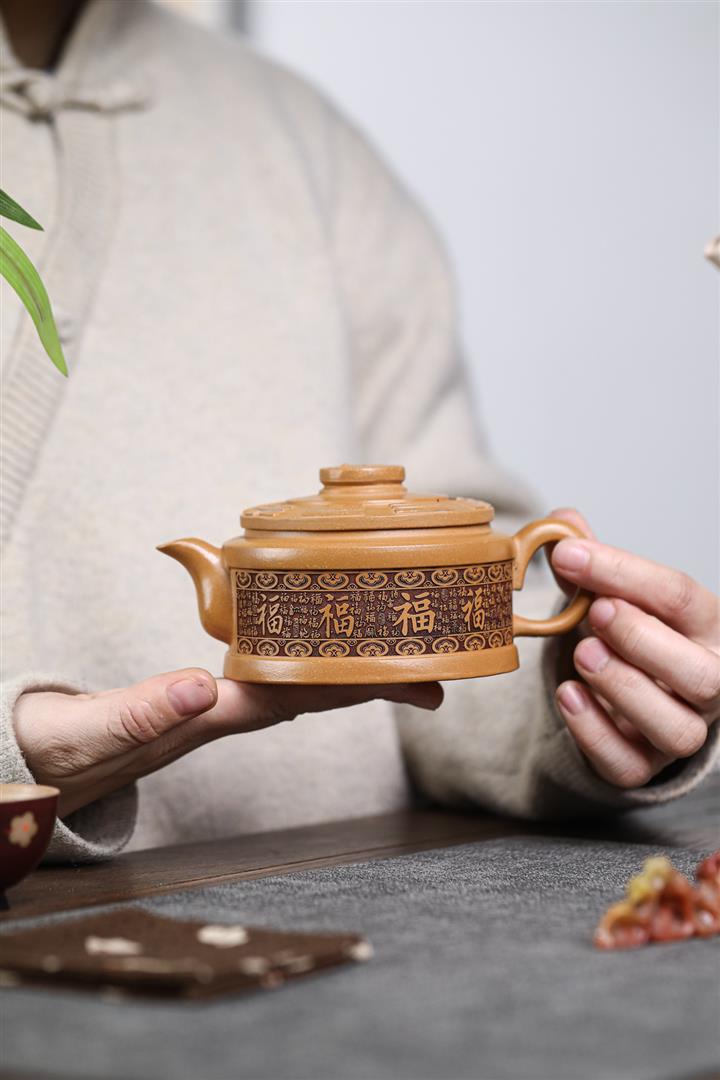 260cc原礦黃金段泥太極百福泡茶壺POT9557