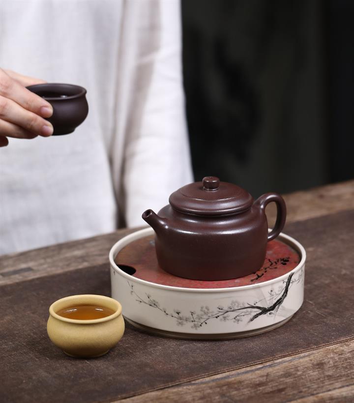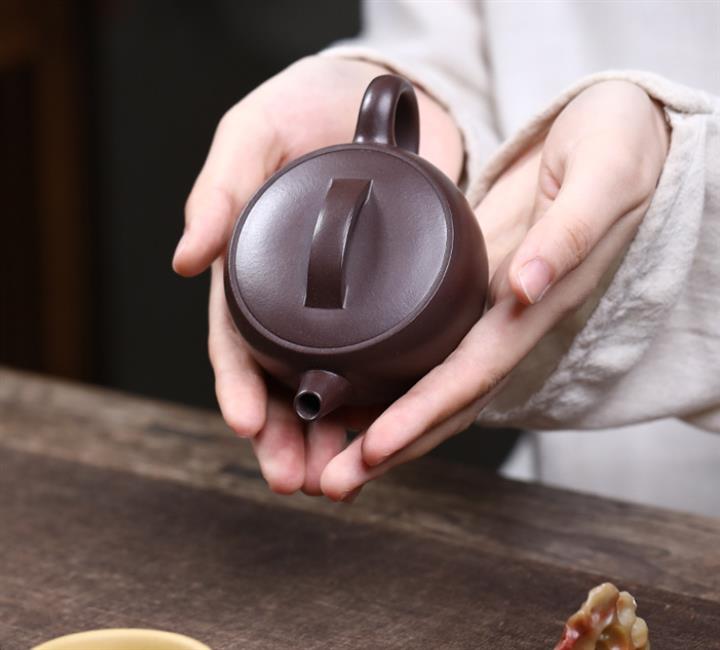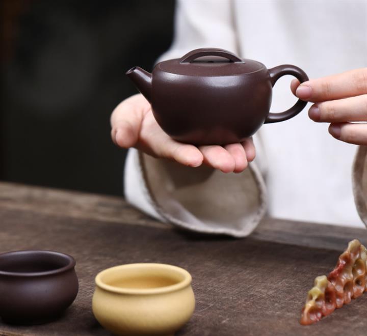【泥料特點】砂土氣重,似淳實農民,日久使用,漸露鋒芒,養成變化,溫潤莊重。紫砂是壹種雙重氣孔結構的多孔性材質,氣孔微細,密度高。用紫砂壺沏茶,不失原味,且香不渙散,得茶之真香真味。紫砂使用越久,壺身色澤越發光亮照人,氣韻溫雅。紫砂壺長久使用器身會因撫摸擦拭,變得越發溫潤光澤。