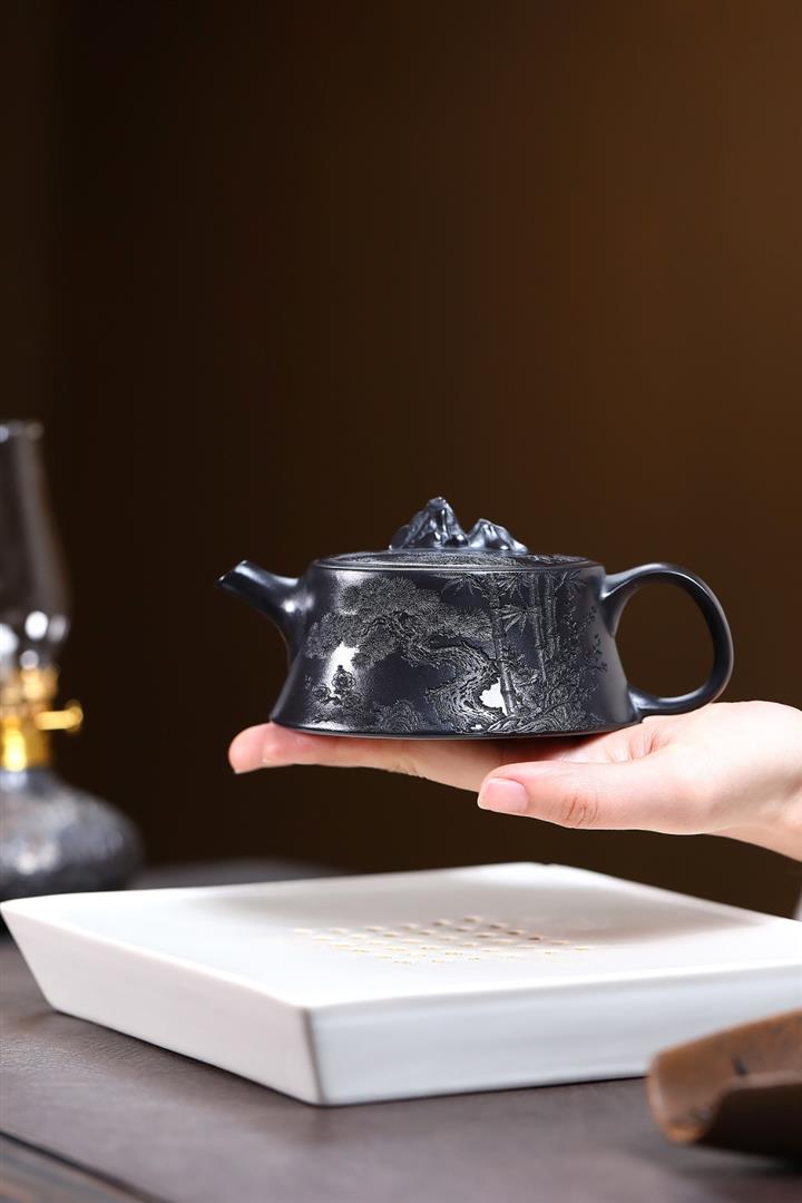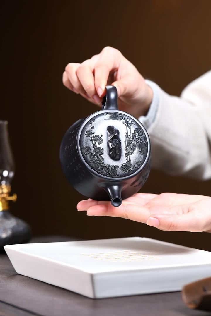 【作品介紹】此款壺形線條流暢,壺把,壺嘴,壺身壹氣呵成栩栩如生,是收藏把玩的好壺,泥料色澤古樸典雅,日久使用,漸露鋒芒,養成變化快,溫潤莊重,用其泡茶,使用的年代久,壺身就溫潤,泡出來的茶湯也就醇郁芳馨。