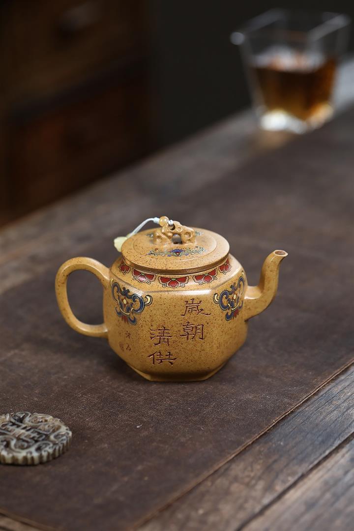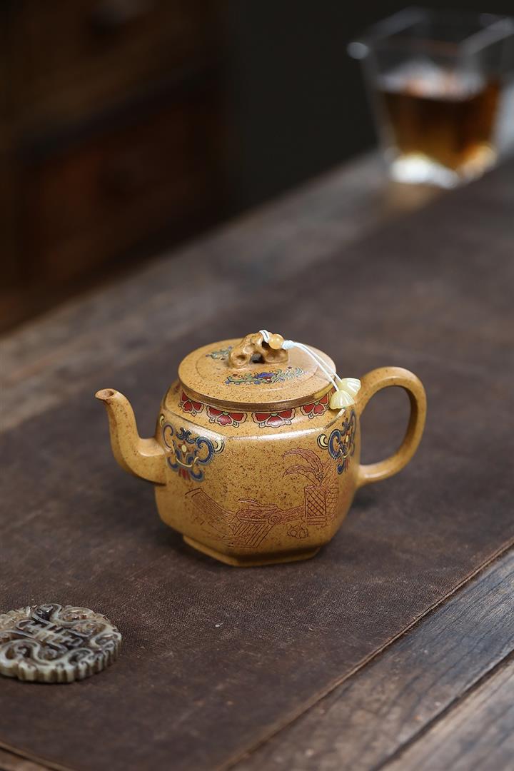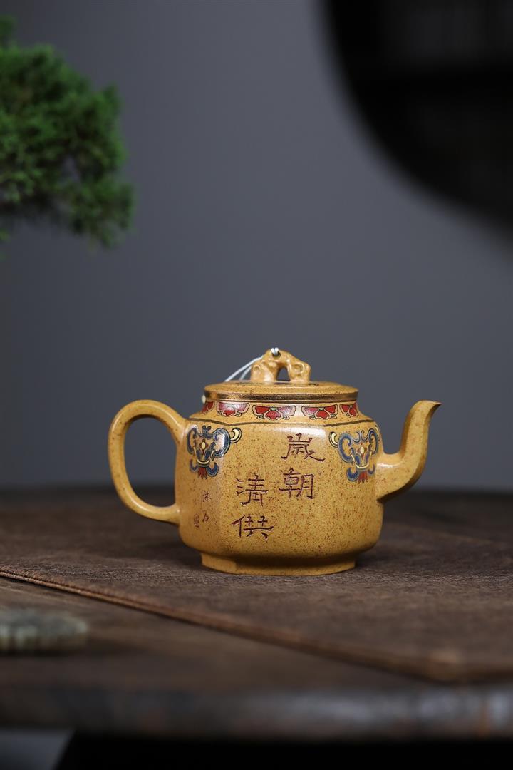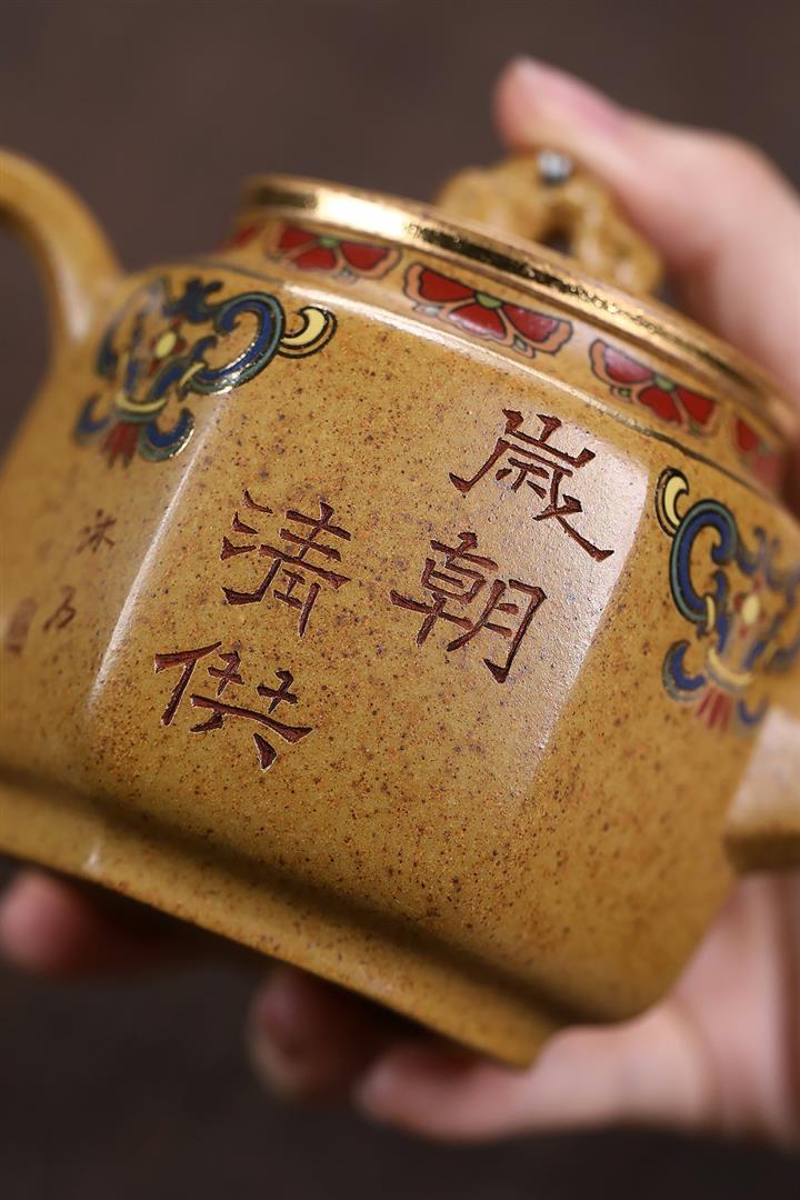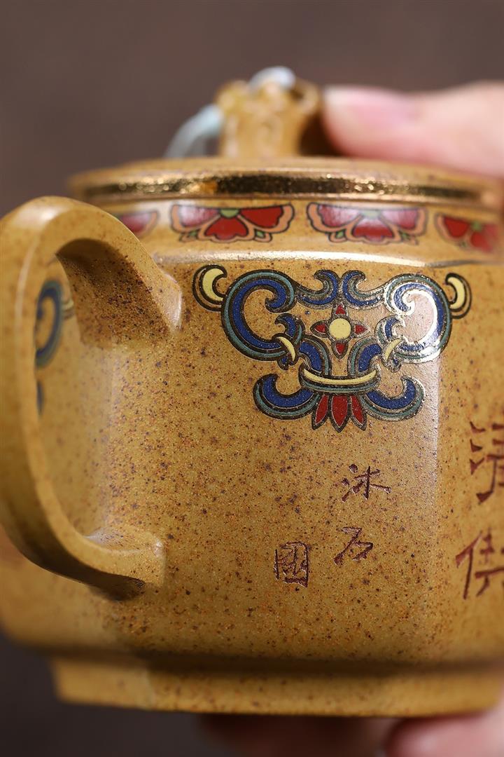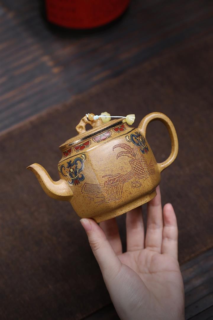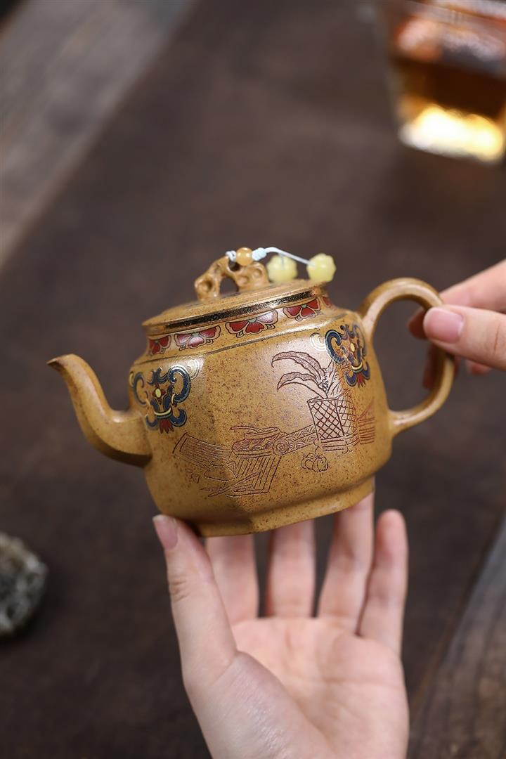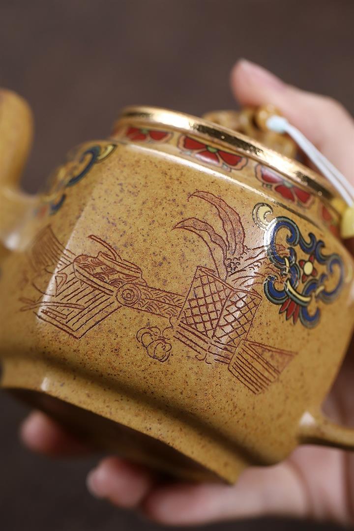 原礦紫砂君子蘭刻繪漢鐸茶壺POT7517