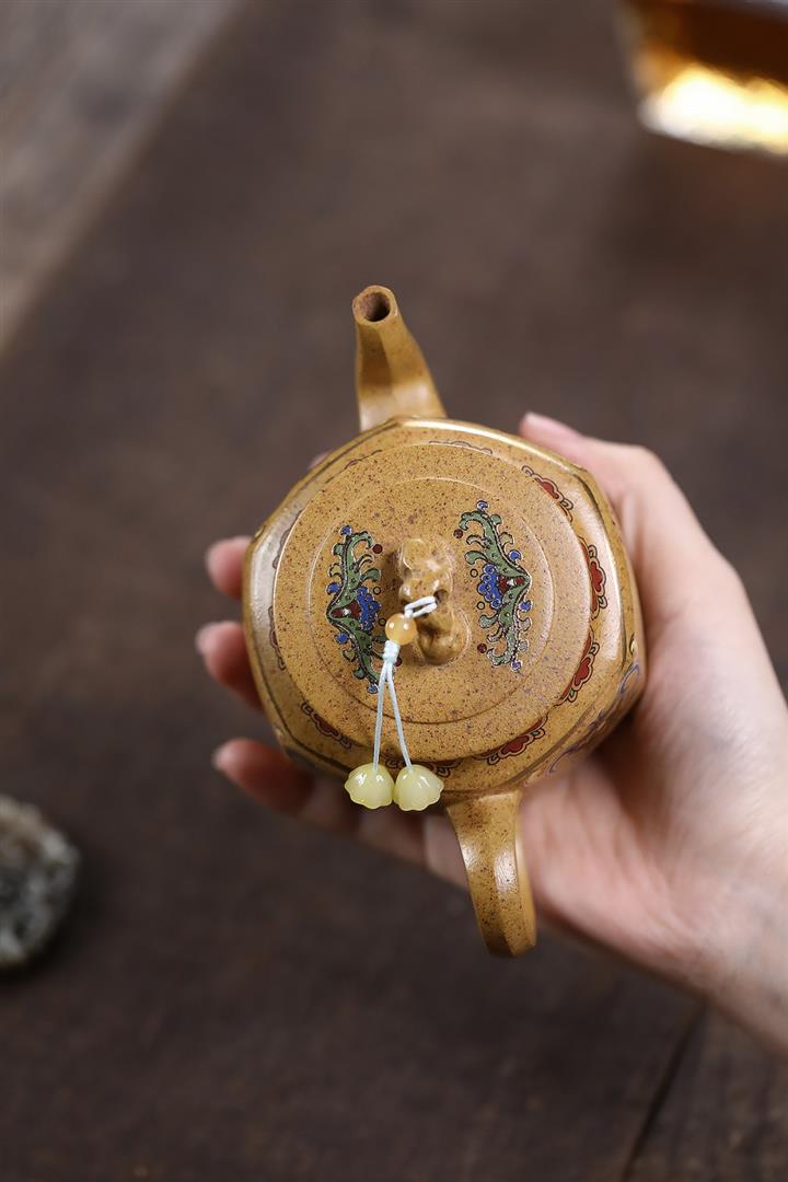 【泥料特點】砂土氣重,似淳實農民,日久使用,漸露鋒芒,養成變化,溫潤莊重。紫砂是壹種雙重氣孔結構的多孔性材質,氣孔微細,密度高。用紫砂壺沏茶,不失原味,且香不渙散,得茶之真香真味。紫砂使用越久,壺身色澤越發光亮照人,氣韻溫雅。紫砂壺長久使用器身會因撫摸擦拭,變得越發溫潤光澤。