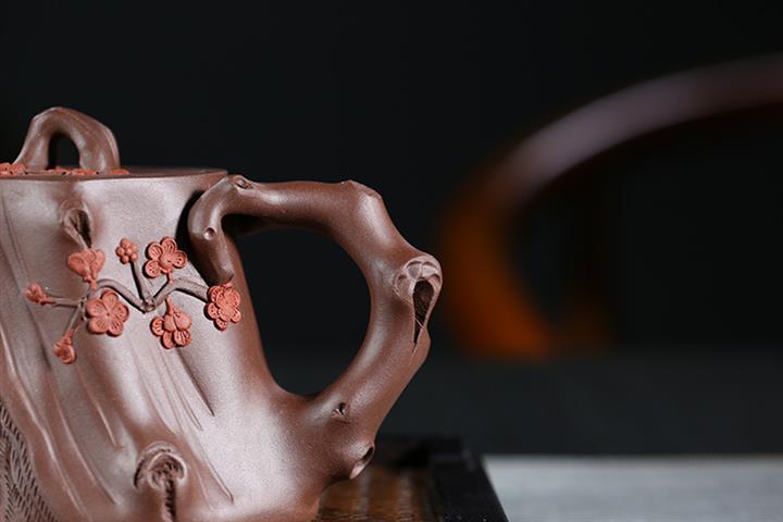 【泥料特點】砂土氣重,似淳實農民,日久使用,漸露鋒芒,養成變化,溫潤莊重。紫砂是壹種雙重氣孔結構的多孔性材質,氣孔微細,密度高。用紫砂壺沏茶,不失原味,且香不渙散,得茶之真香真味。紫砂使用越久,壺身色澤越發光亮照人,氣韻溫雅。紫砂壺長久使用器身會因撫摸擦拭,變得越發溫潤光澤。
