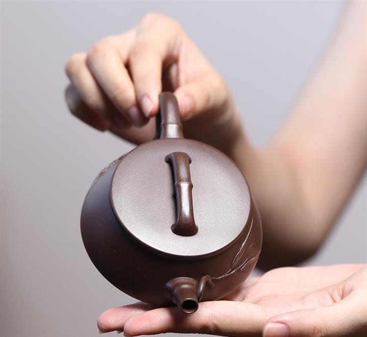 【泥料特點】砂土氣重,似淳實農民,日久使用,漸露鋒芒,養成變化,溫潤莊重。紫砂是壹種雙重氣孔結構的多孔性材質,氣孔微細,密度高。用紫砂壺沏茶,不失原味,且香不渙散,得茶之真香真味。紫砂使用越久,壺身色澤越發光亮照人,氣韻溫雅。紫砂壺長久使用器身會因撫摸擦拭,變得越發溫潤光澤。