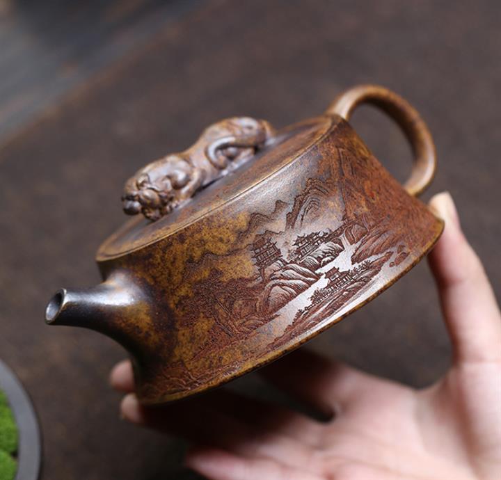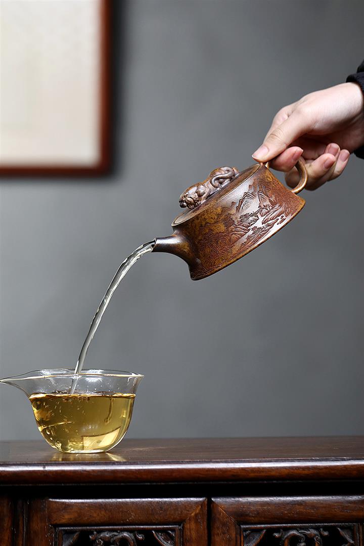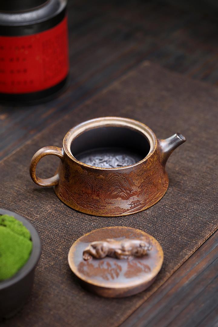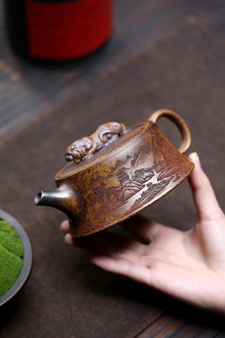 原礦大紅袍焐灰山水德鐘紫砂壺POT4324