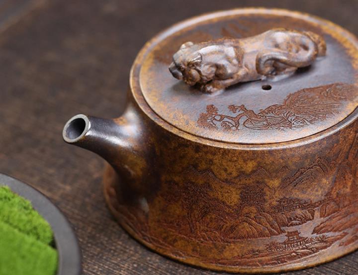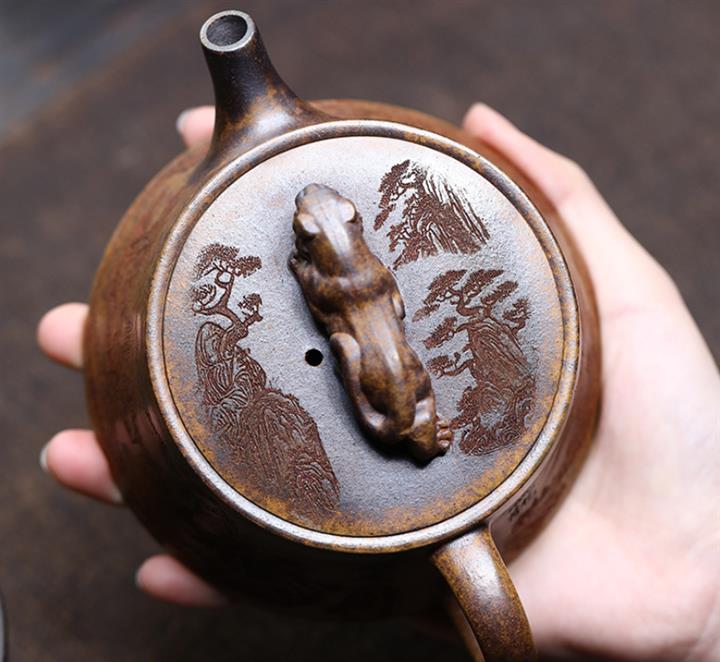 原礦高溫柴燒段泥金蟾漢瓦紫砂壺POT4320