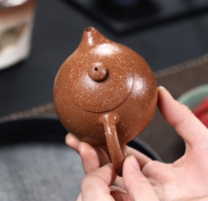 【泥料特點】砂土氣重,似淳實農民,日久使用,漸露鋒芒,養成變化,溫潤莊重。紫砂是壹種雙重氣孔結構的多孔性材質,氣孔微細,密度高。用紫砂壺沏茶,不失原味,且香不渙散,得茶之真香真味。紫砂使用越久,壺身色澤越發光亮照人,氣韻溫雅。紫砂壺長久使用器身會因撫摸擦拭,變得越發溫潤光澤。