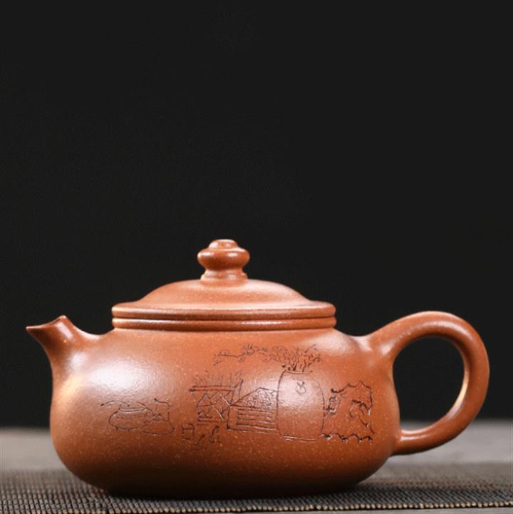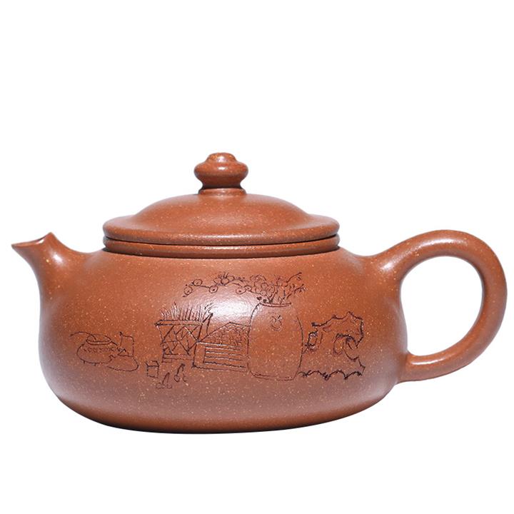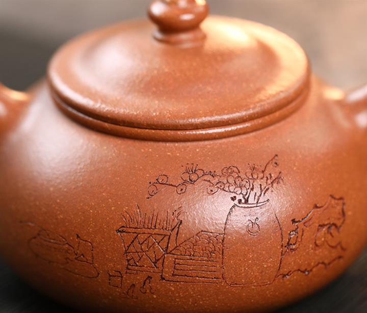 原礦大紅袍泥繪水平紫砂壺POT4996