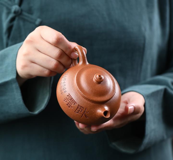 【泥料特點】砂土氣重,似淳實農民,日久使用,漸露鋒芒,養成變化,溫潤莊重。紫砂是壹種雙重氣孔結構的多孔性材質,氣孔微細,密度高。用紫砂壺沏茶,不失原味,且香不渙散,得茶之真香真味。紫砂使用越久,壺身色澤越發光亮照人,氣韻溫雅。紫砂壺長久使用器身會因撫摸擦拭,變得越發溫潤光澤。