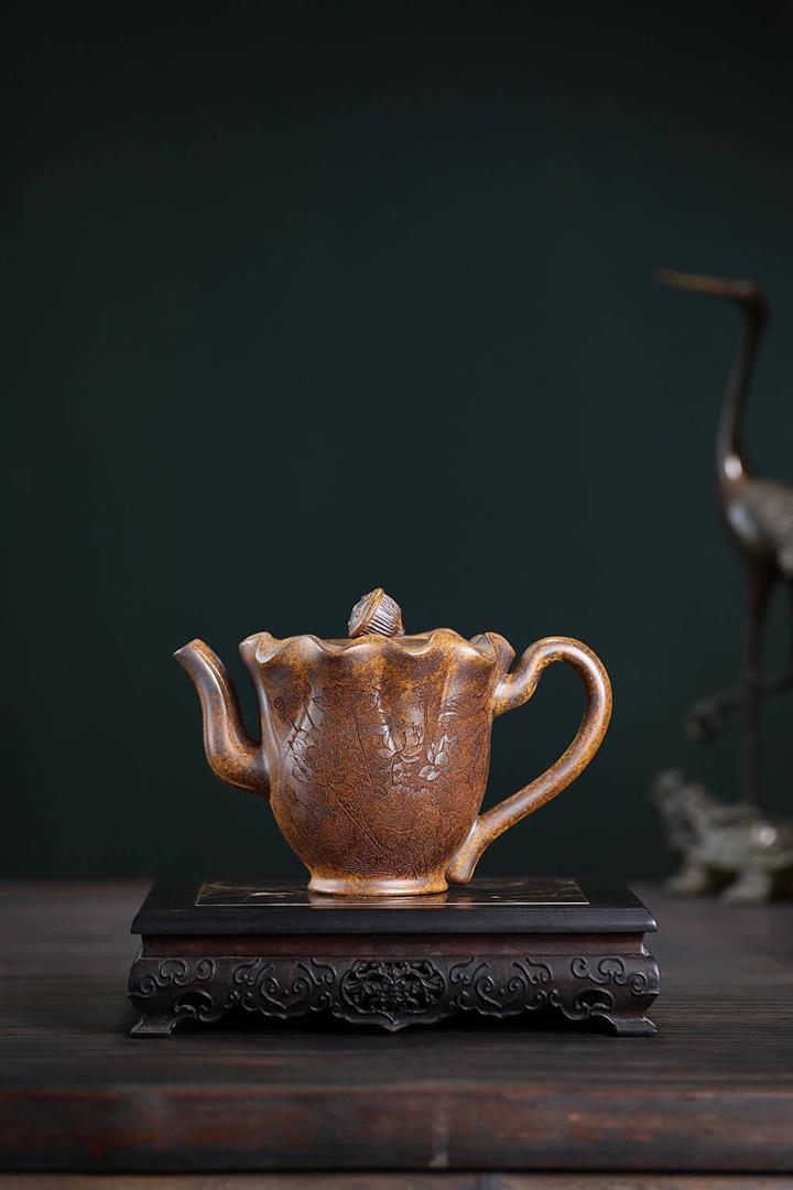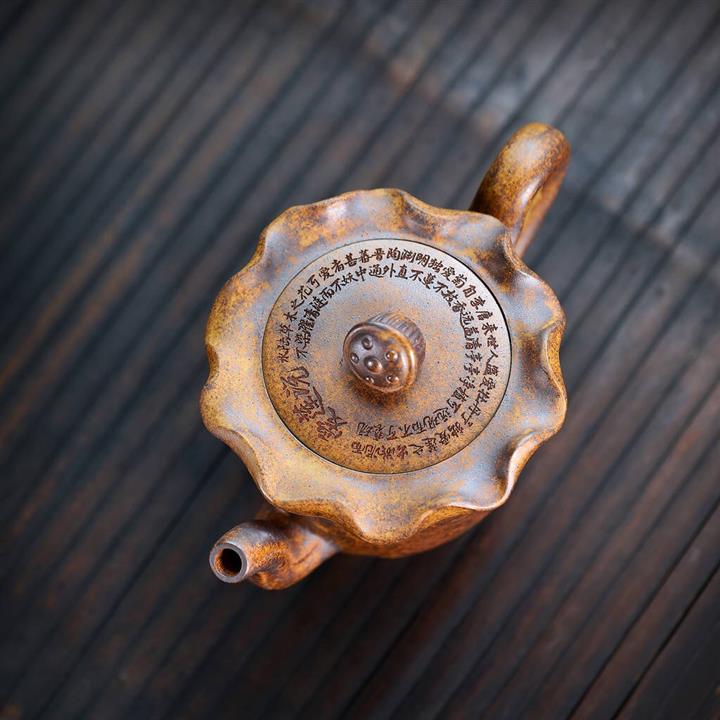 原礦朱泥純手工錦紋蓮子茶壺POT7428