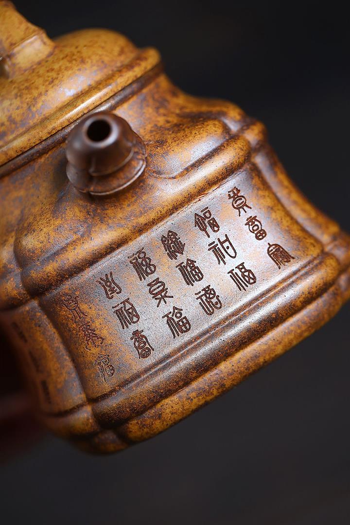 原礦高溫柴燒段泥金蟾漢瓦紫砂壺POT4320