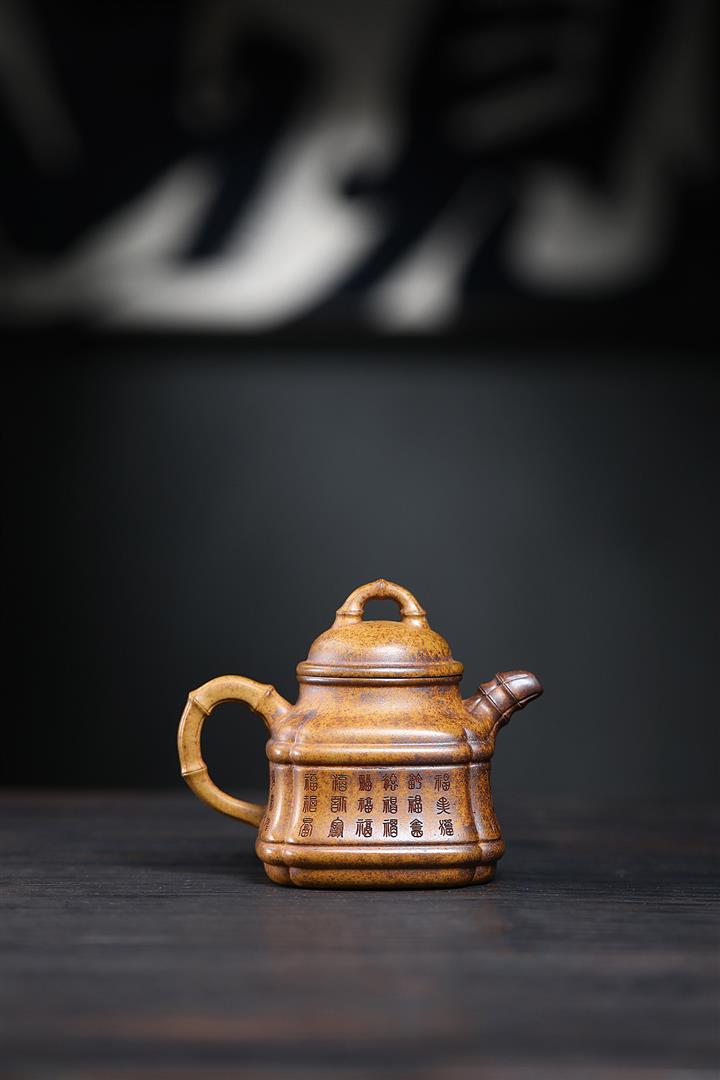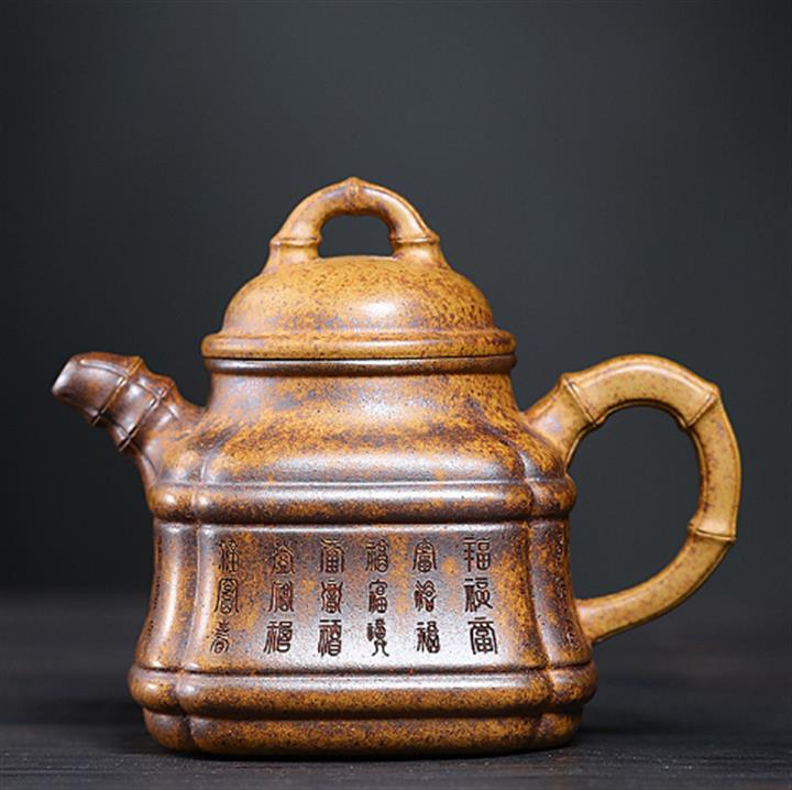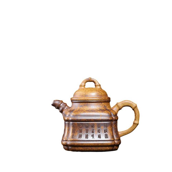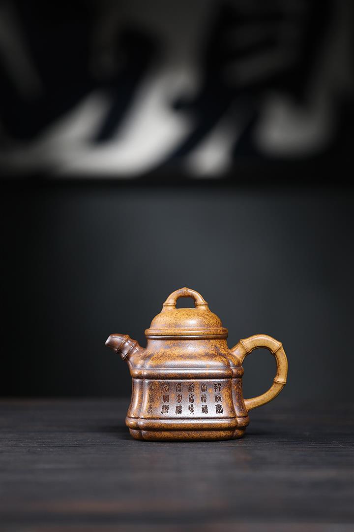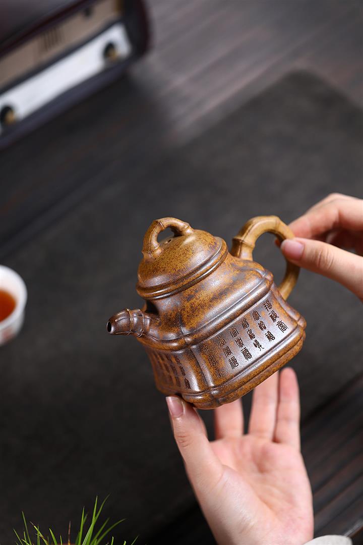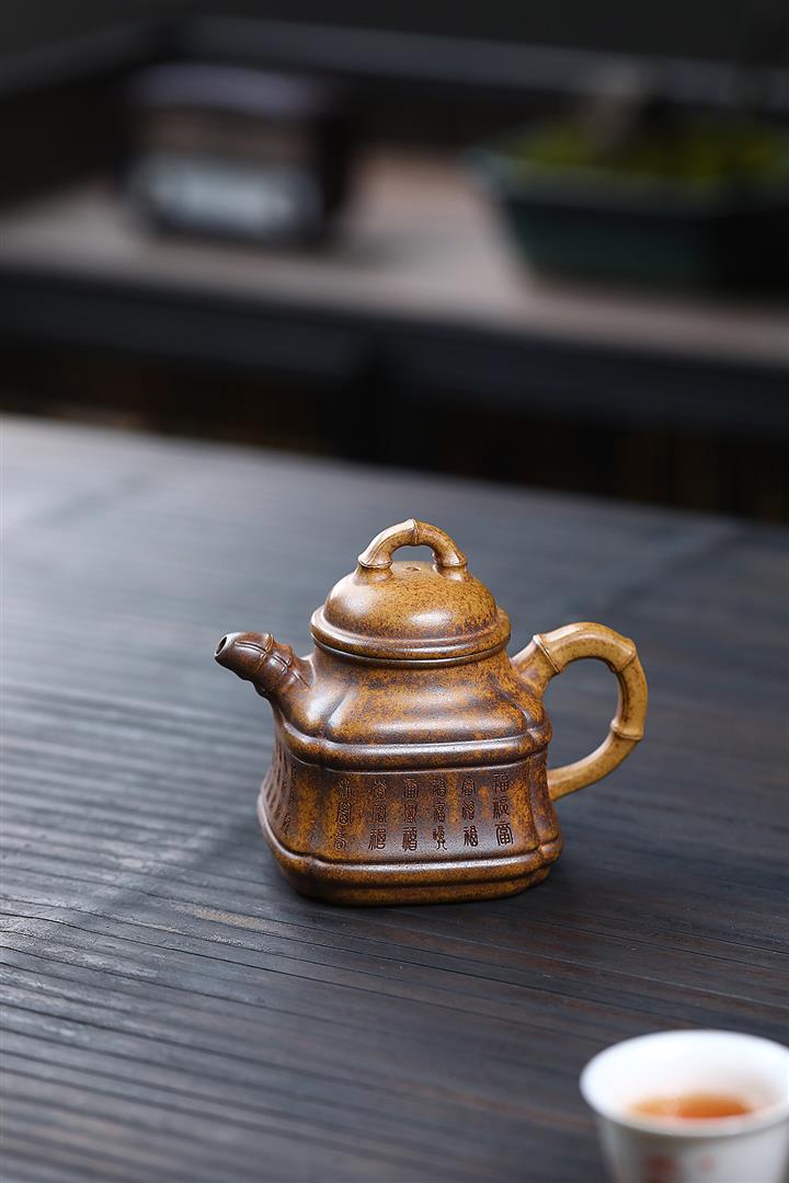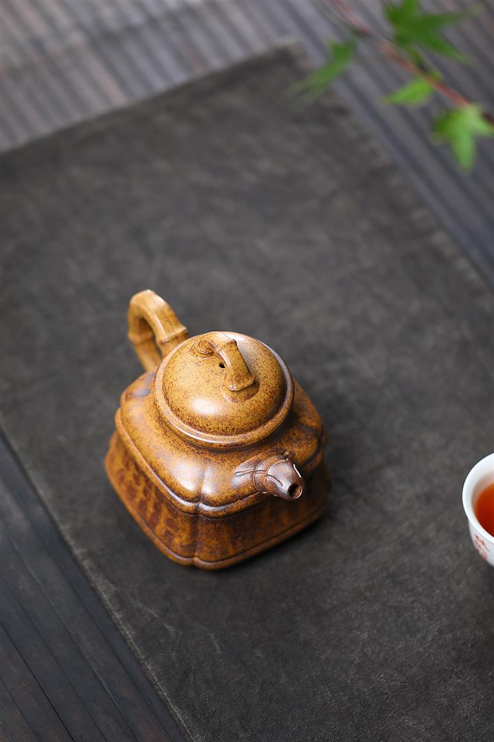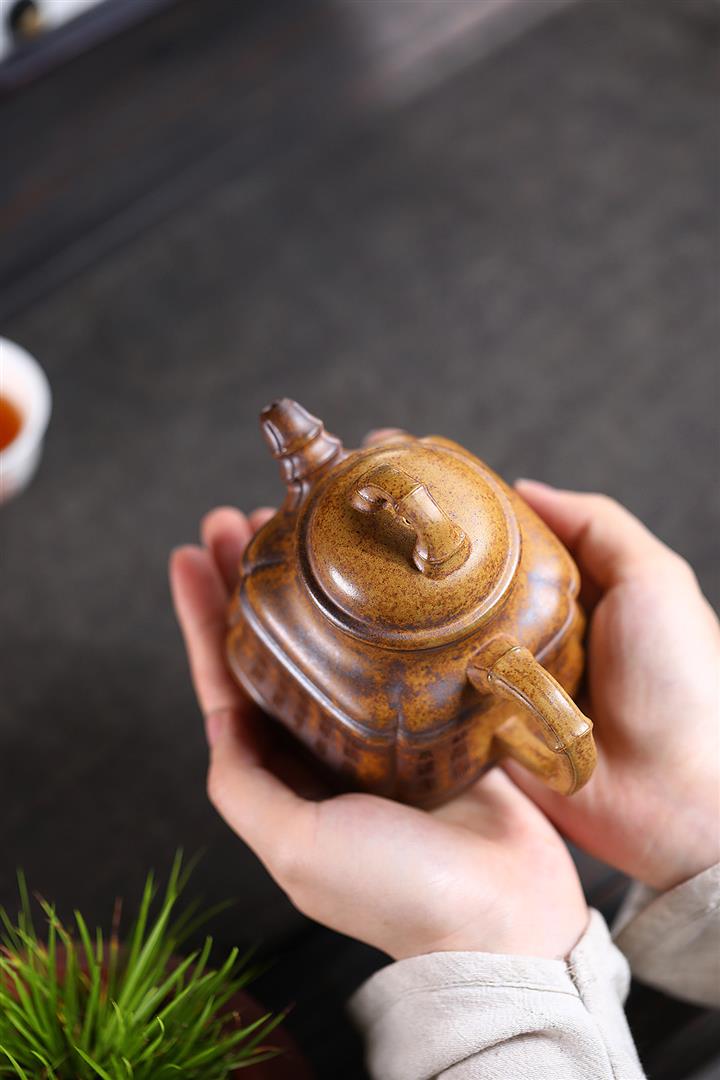 280cc原礦龍骨金沙特高溫柴燒四方竹鼎泡茶壺POT9661