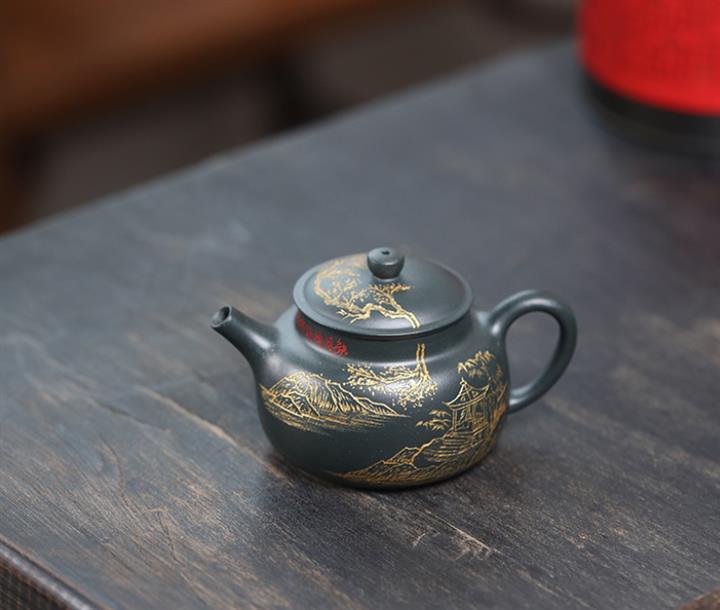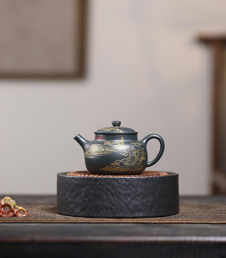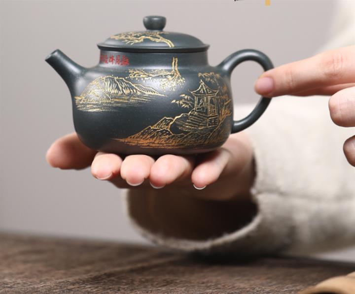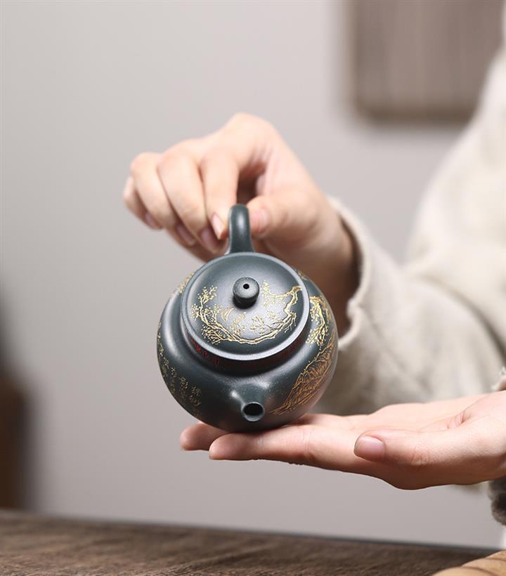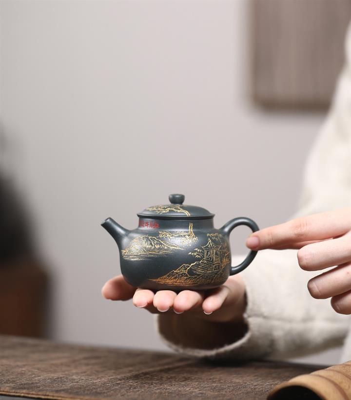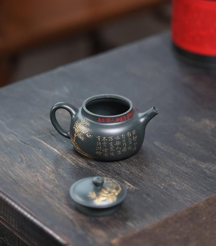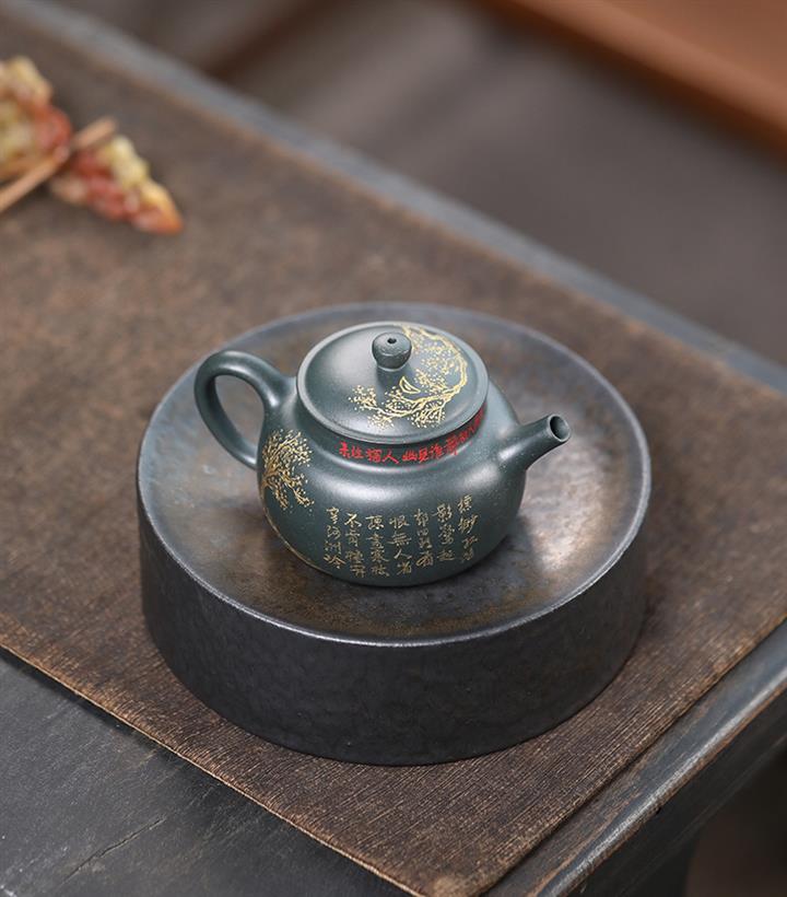 150cc 九齡君子蘭墨綠泥漢風泡茶壺POT9707