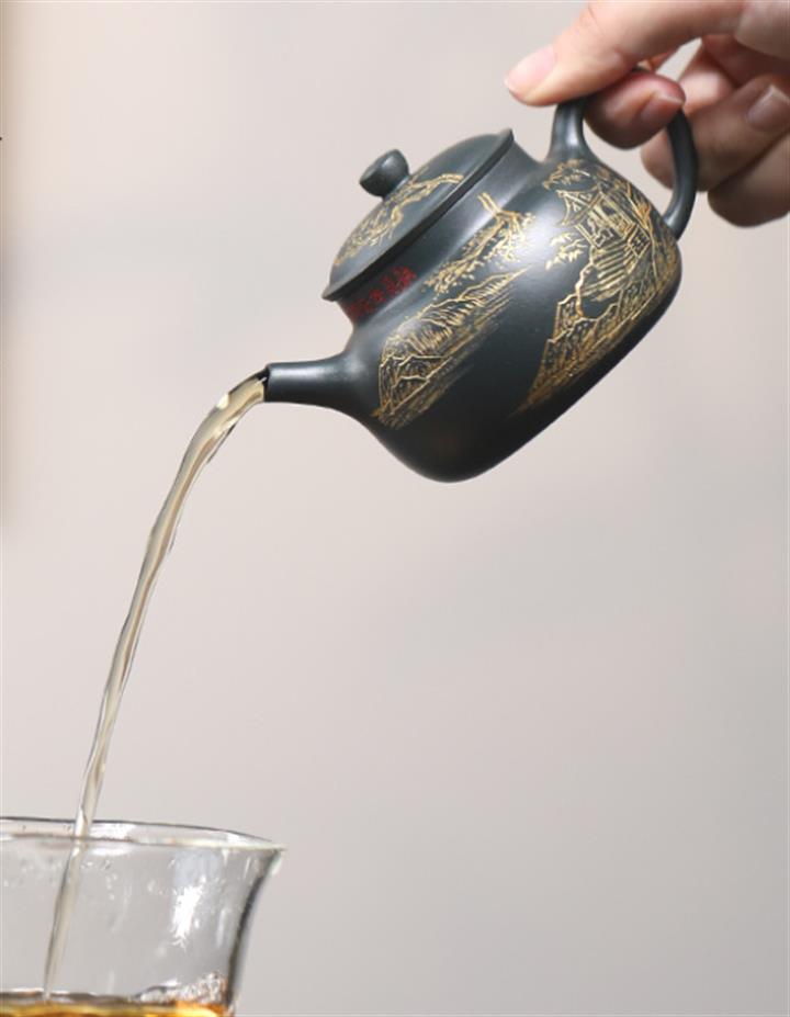【作品介紹】此款壺形線條流暢,壺把,壺嘴,壺身壹氣呵成栩栩如生,是收藏把玩的好壺,泥料色澤古樸典雅,日久使用,漸露鋒芒,養成變化快,溫潤莊重,用其泡茶,使用的年代久,壺身就溫潤,泡出來的茶湯也就醇郁芳馨。