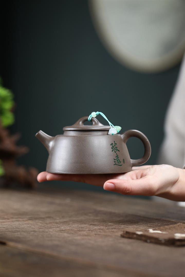 【作品介紹】此款壺形線條流暢,壺把,壺嘴,壺身壹氣呵成栩栩如生,是收藏把玩的好壺,泥料色澤古樸典雅,日久使用,漸露鋒芒,養成變化快,溫潤莊重,用其泡茶,使用的年代久,壺身就溫潤,泡出來的茶湯也就醇郁芳馨。
