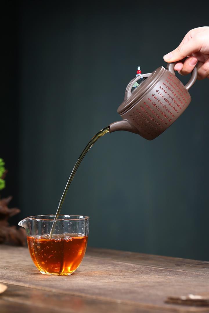 【泥料特點】砂土氣重,似淳實農民,日久使用,漸露鋒芒,養成變化,溫潤莊重。紫砂是壹種雙重氣孔結構的多孔性材質,氣孔微細,密度高。用紫砂壺沏茶,不失原味,且香不渙散,得茶之真香真味。紫砂使用越久,壺身色澤越發光亮照人,氣韻溫雅。紫砂壺長久使用器身會因撫摸擦拭,變得越發溫潤光澤。