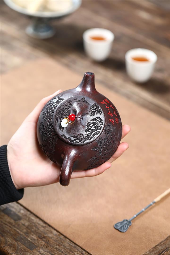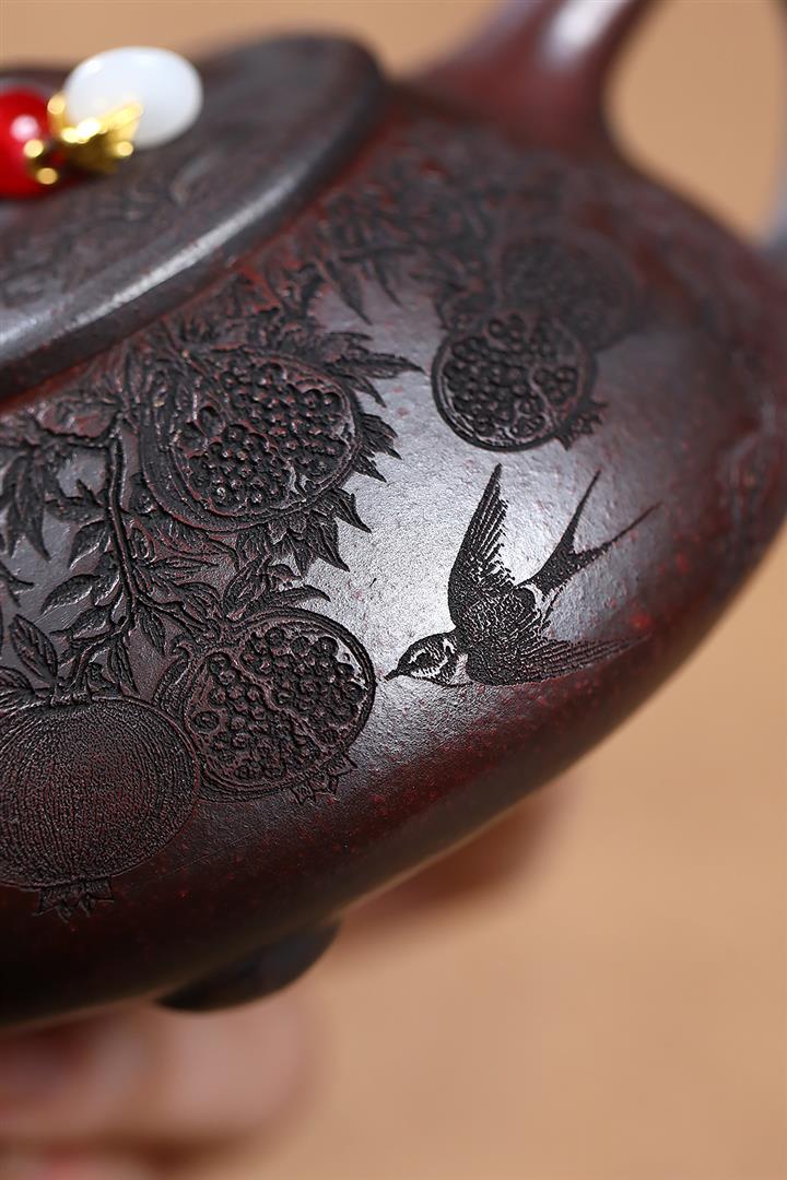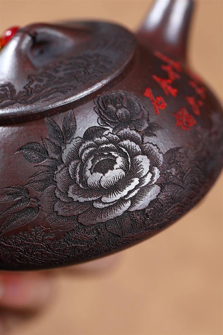 純全手工紫砂壺刻繪紅皮龍西施壺POT4071