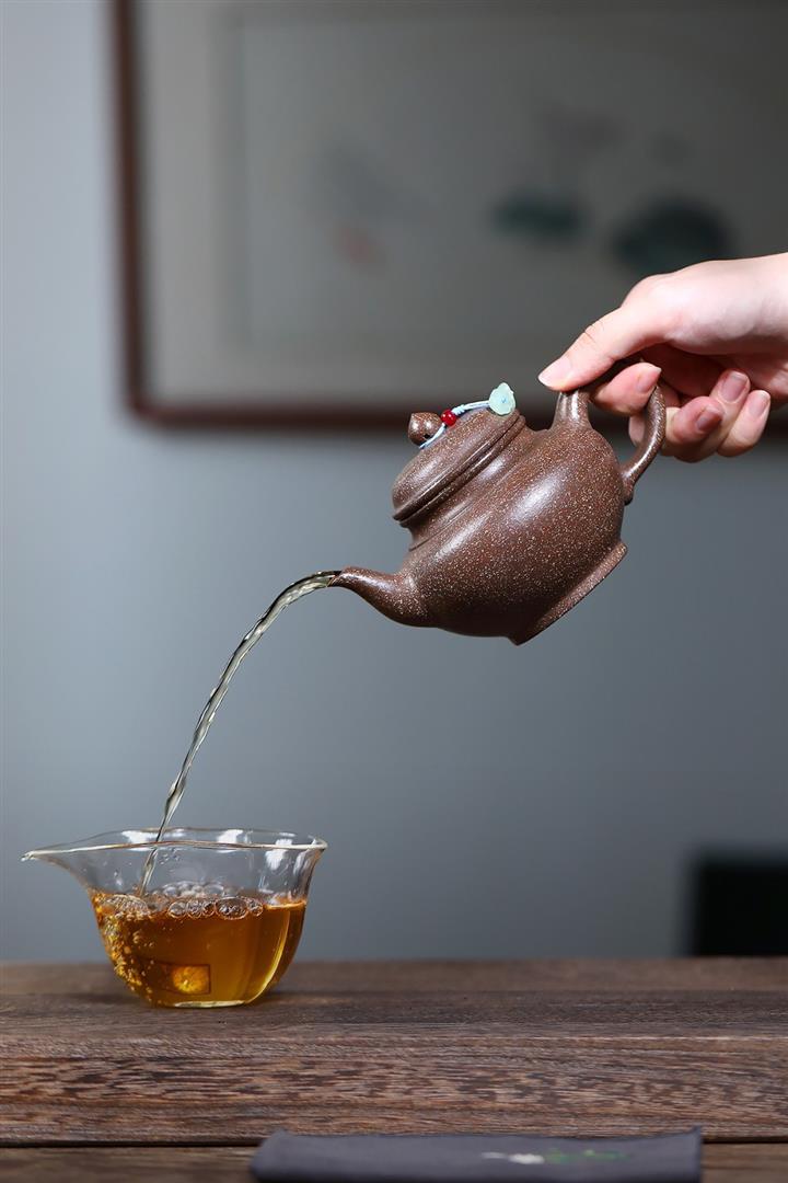 【泥料特點】砂土氣重,似淳實農民,日久使用,漸露鋒芒,養成變化,溫潤莊重。紫砂是壹種雙重氣孔結構的多孔性材質,氣孔微細,密度高。用紫砂壺沏茶,不失原味,且香不渙散,得茶之真香真味。紫砂使用越久,壺身色澤越發光亮照人,氣韻溫雅。紫砂壺長久使用器身會因撫摸擦拭,變得越發溫潤光澤。