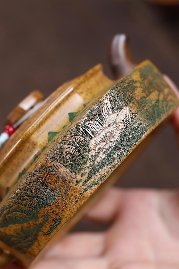 原礦紫泥刻繪梅香秦權壺POT7396