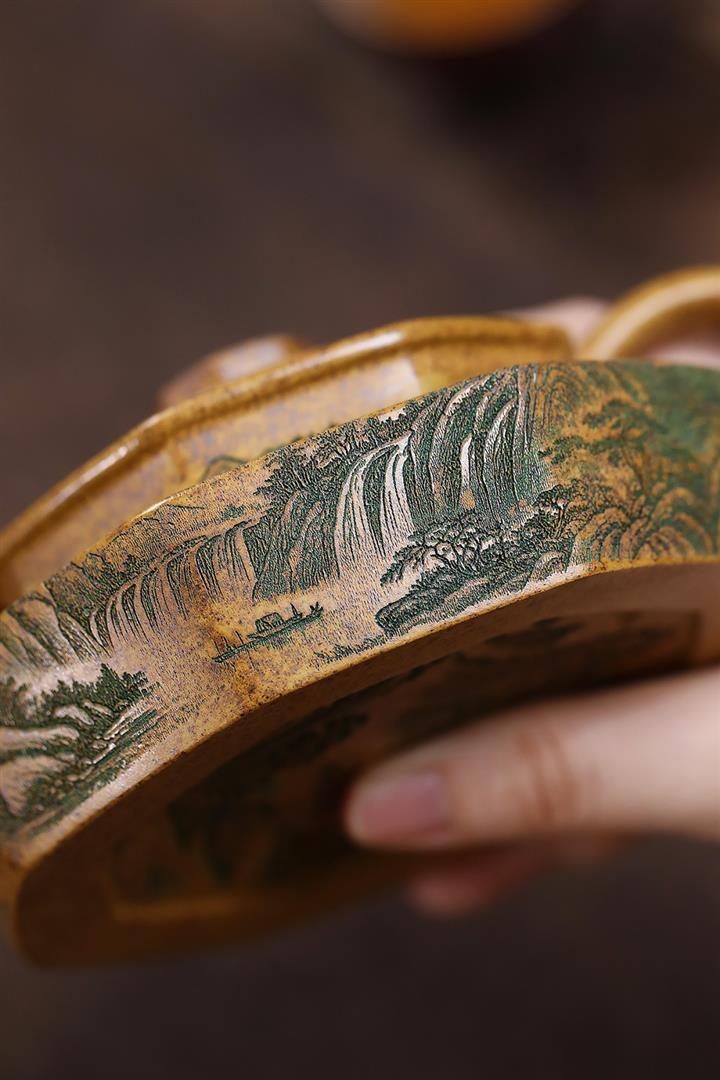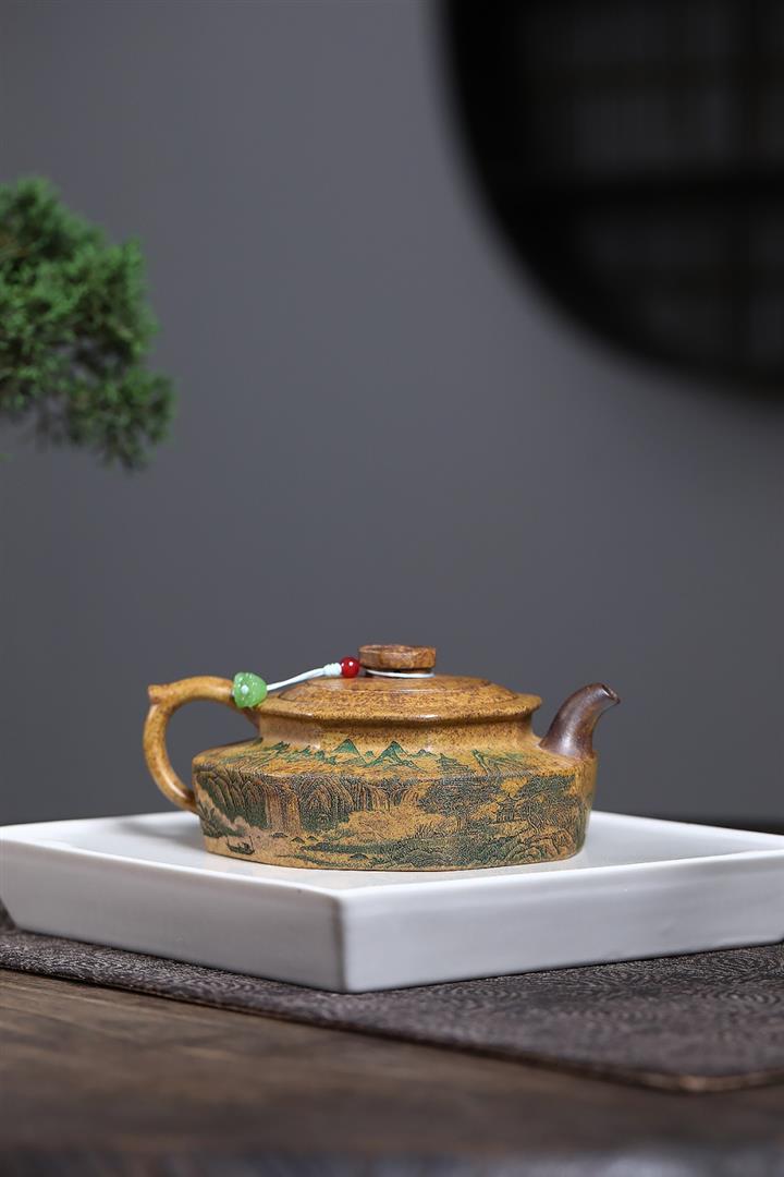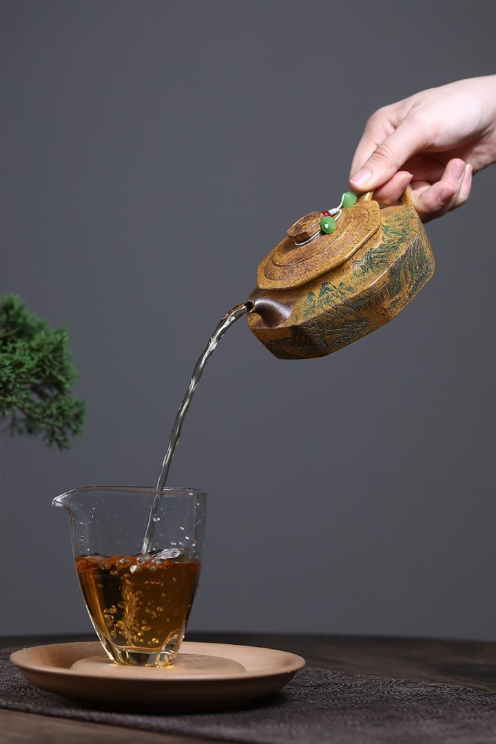 【泥料特點】砂土氣重,似淳實農民,日久使用,漸露鋒芒,養成變化,溫潤莊重。紫砂是壹種雙重氣孔結構的多孔性材質,氣孔微細,密度高。用紫砂壺沏茶,不失原味,且香不渙散,得茶之真香真味。紫砂使用越久,壺身色澤越發光亮照人,氣韻溫雅。紫砂壺長久使用器身會因撫摸擦拭,變得越發溫潤光澤。