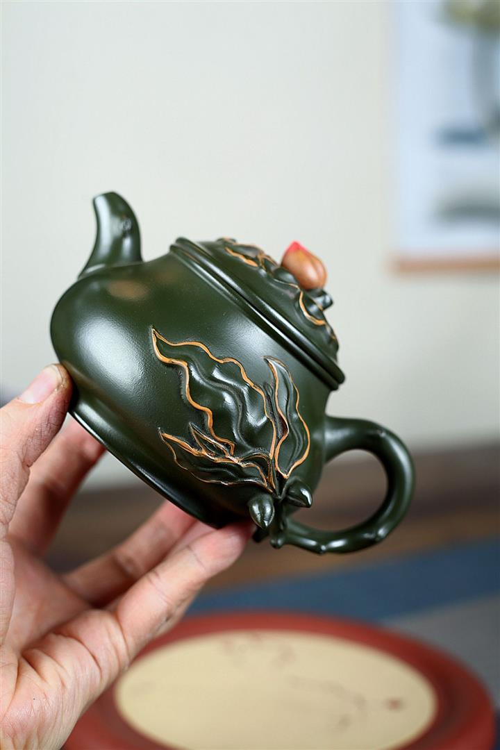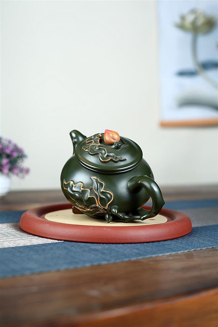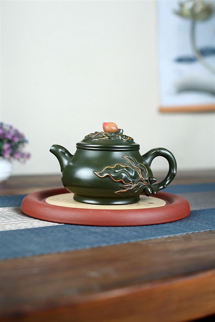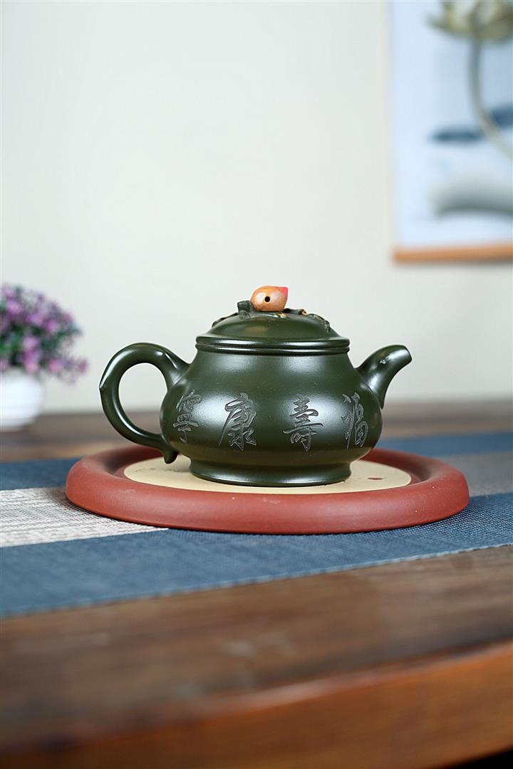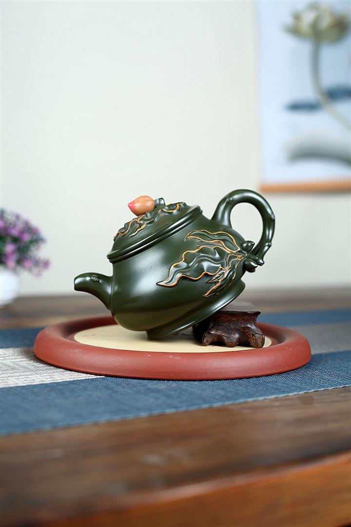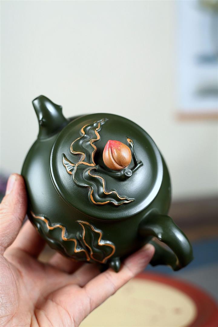 340cc原礦綠泥蟠桃壺泡茶壺POT9820
