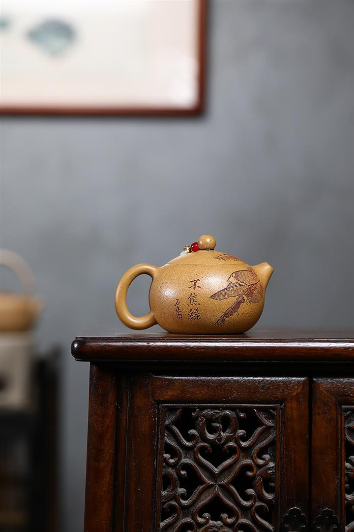 【作品介紹】此款壺形線條流暢,壺把,壺嘴,壺身壹氣呵成栩栩如生,是收藏把玩的好壺,泥料色澤古樸典雅,日久使用,漸露鋒芒,養成變化快,溫潤莊重,用其泡茶,使用的年代久,壺身就溫潤,泡出來的茶湯也就醇郁芳馨。