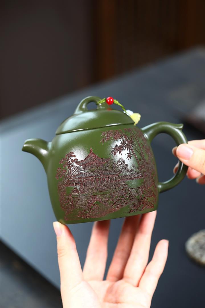 380cc原礦綠泥竹林松濤秦權泡茶壺POT9866