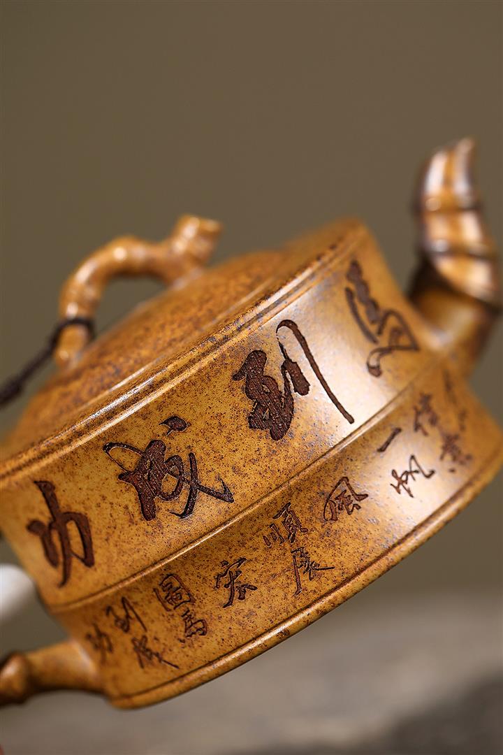 【作品介紹】此款壺形線條流暢,壺把,壺嘴,壺身壹氣呵成栩栩如生,是收藏把玩的好壺,泥料色澤古樸典雅,日久使用,漸露鋒芒,養成變化快,溫潤莊重,用其泡茶,使用的年代久,壺身就溫潤,泡出來的茶湯也就醇郁芳馨。
