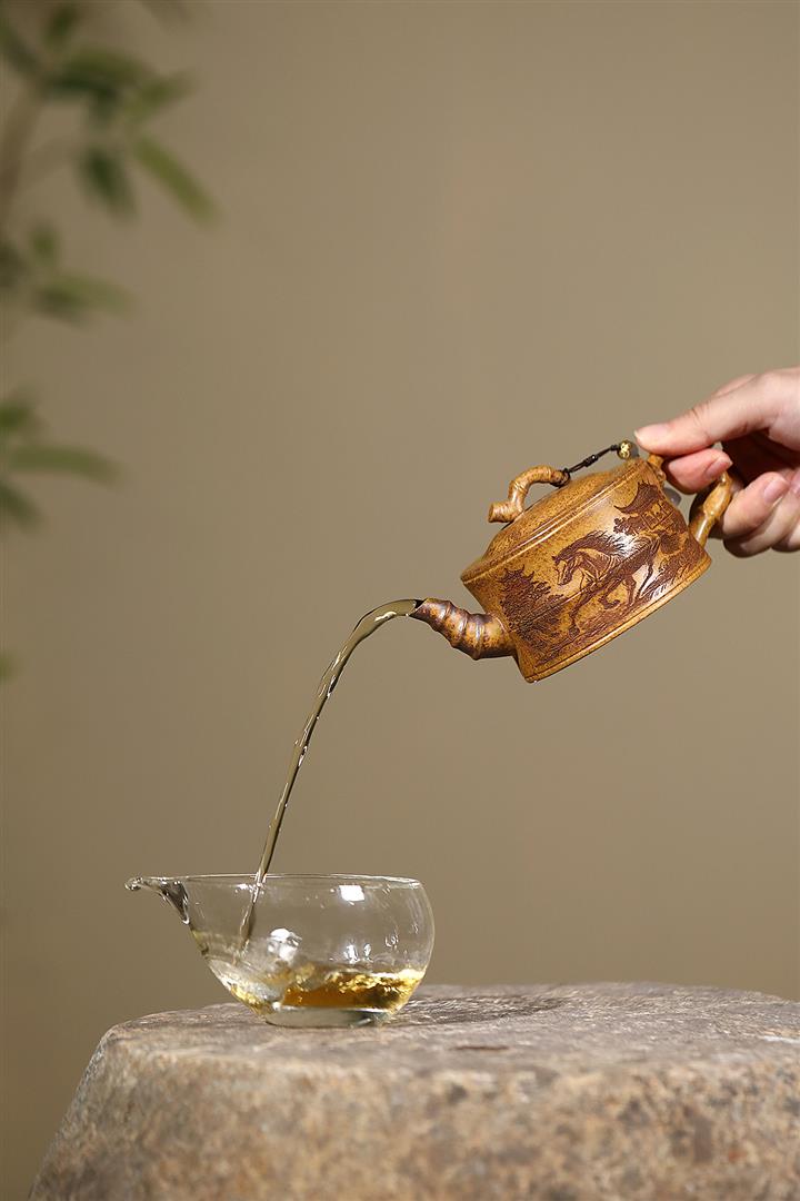 【泥料特點】砂土氣重,似淳實農民,日久使用,漸露鋒芒,養成變化,溫潤莊重。紫砂是壹種雙重氣孔結構的多孔性材質,氣孔微細,密度高。用紫砂壺沏茶,不失原味,且香不渙散,得茶之真香真味。紫砂使用越久,壺身色澤越發光亮照人,氣韻溫雅。紫砂壺長久使用器身會因撫摸擦拭,變得越發溫潤光澤。