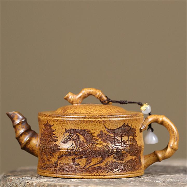 200cc原礦龍骨金砂竹段泡茶壺POT9868