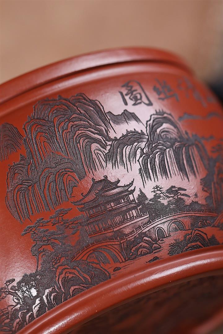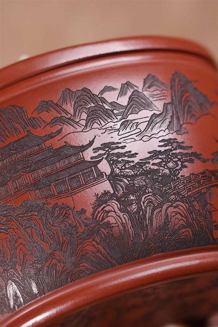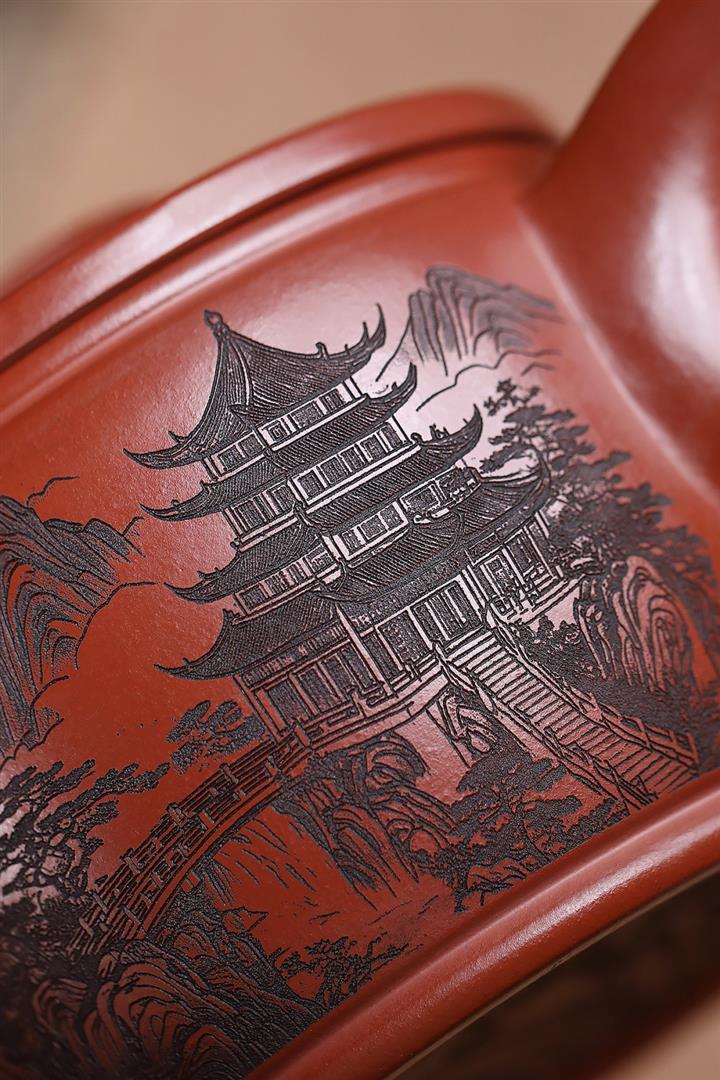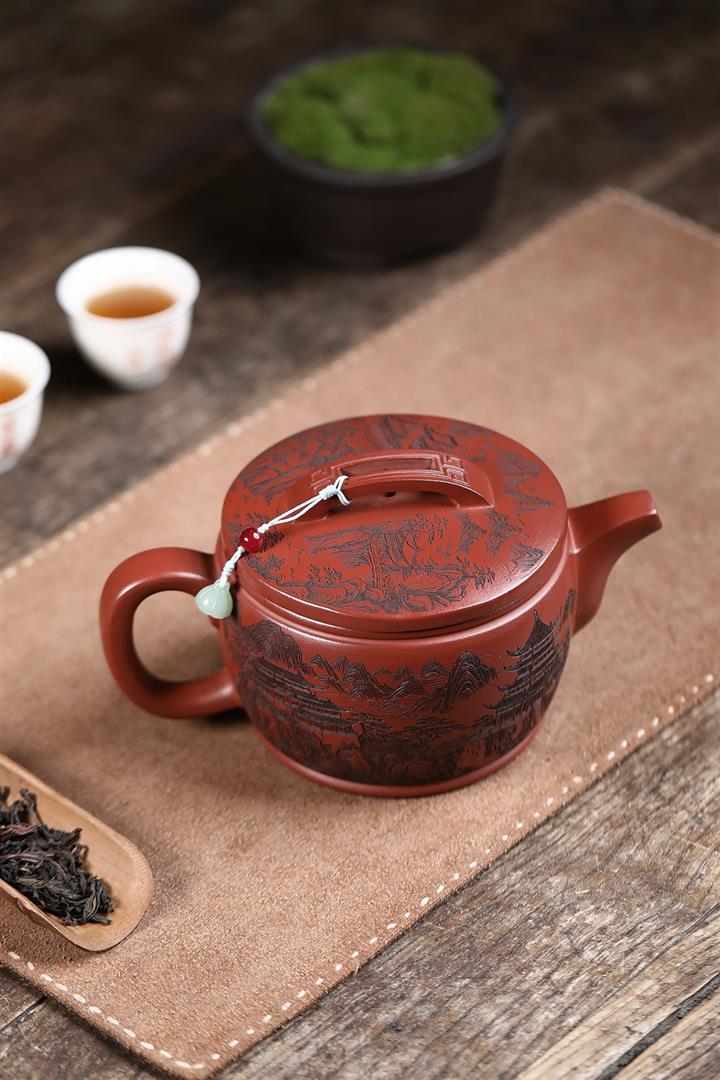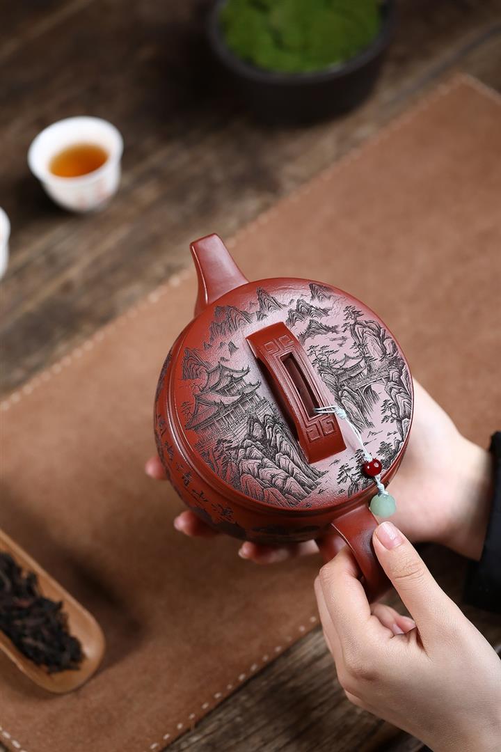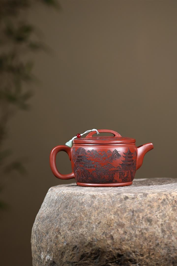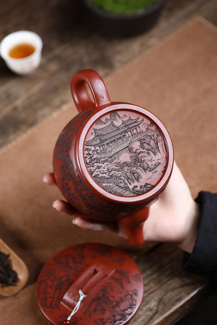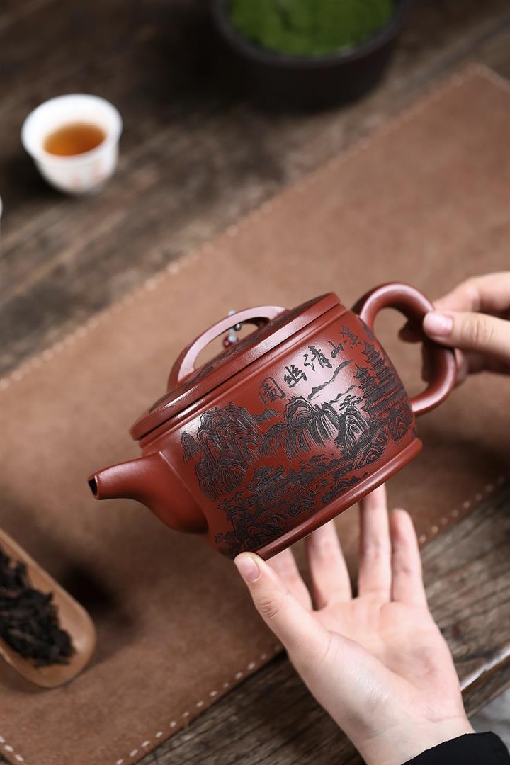 650cc原礦紅皮龍山水漢瓦泡茶壺POT9869