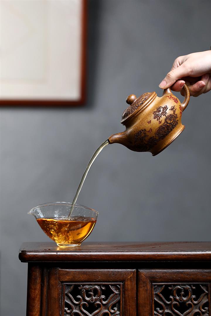 【泥料特點】砂土氣重,似淳實農民,日久使用,漸露鋒芒,養成變化,溫潤莊重。紫砂是壹種雙重氣孔結構的多孔性材質,氣孔微細,密度高。用紫砂壺沏茶,不失原味,且香不渙散,得茶之真香真味。紫砂使用越久,壺身色澤越發光亮照人,氣韻溫雅。紫砂壺長久使用器身會因撫摸擦拭,變得越發溫潤光澤。
