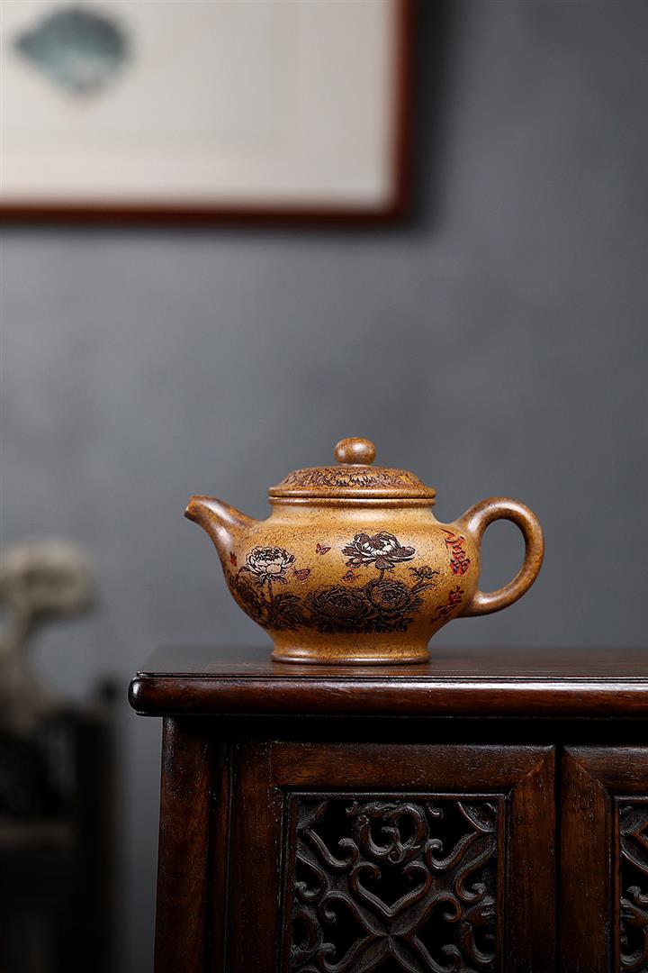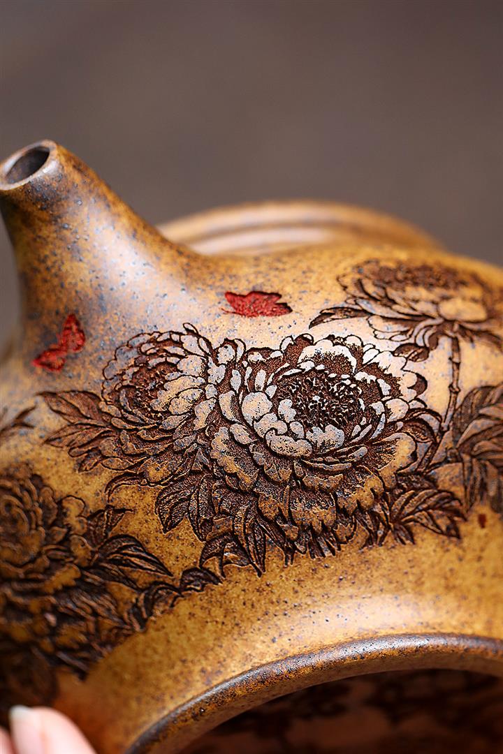 450cc原礦高溫段泥還原燒牡丹掇只泡茶壺POT9875