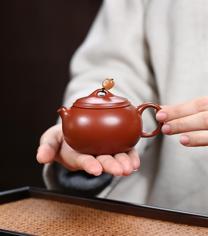 【泥料特點】砂土氣重,似淳實農民,日久使用,漸露鋒芒,養成變化,溫潤莊重。紫砂是壹種雙重氣孔結構的多孔性材質,氣孔微細,密度高。用紫砂壺沏茶,不失原味,且香不渙散,得茶之真香真味。紫砂使用越久,壺身色澤越發光亮照人,氣韻溫雅。紫砂壺長久使用器身會因撫摸擦拭,變得越發溫潤光澤。