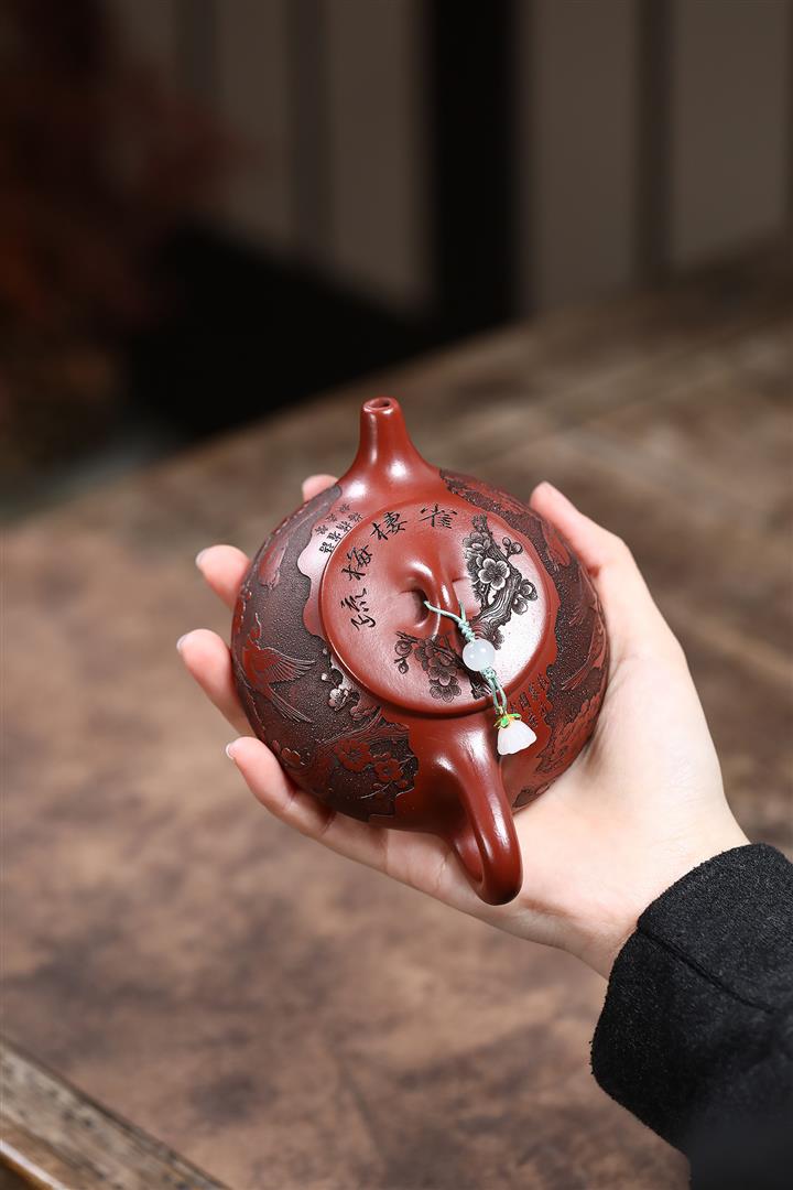 原礦紫朱泥手工梅花寒江茶壺POT6898