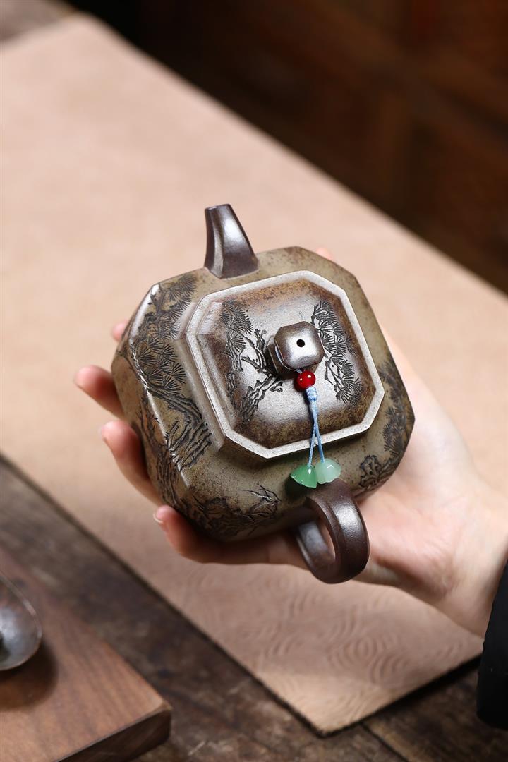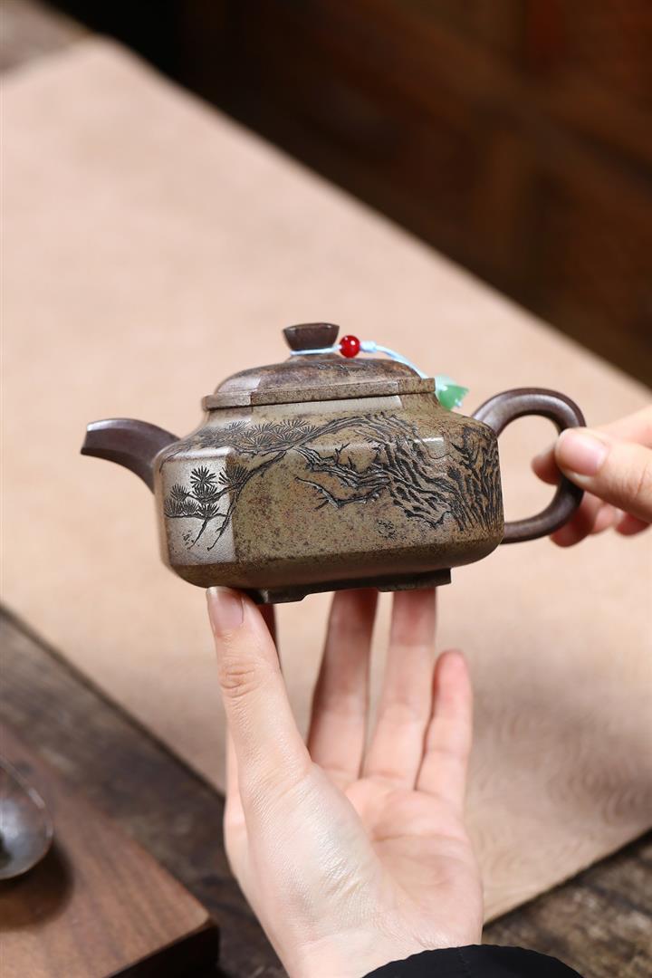 270cc原礦沈香泥柴燒鐵骨松針泡茶壺POT9891