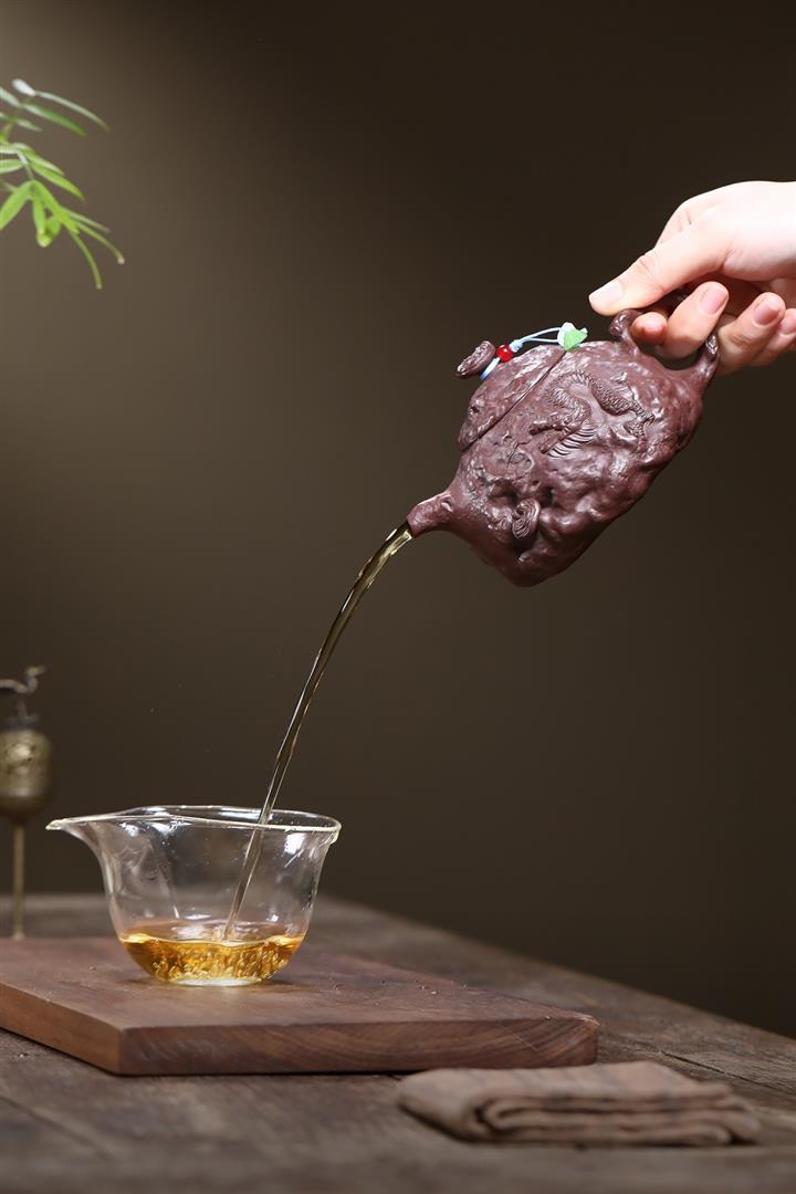 【泥料特點】砂土氣重,似淳實農民,日久使用,漸露鋒芒,養成變化,溫潤莊重。紫砂是壹種雙重氣孔結構的多孔性材質,氣孔微細,密度高。用紫砂壺沏茶,不失原味,且香不渙散,得茶之真香真味。紫砂使用越久,壺身色澤越發光亮照人,氣韻溫雅。紫砂壺長久使用器身會因撫摸擦拭,變得越發溫潤光澤。