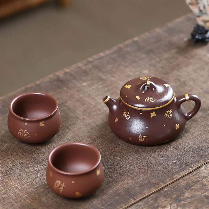 260cc原礦紫泥描金漢鐸壹壺兩杯茶壺POT9285