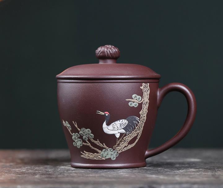 345cc原礦紫泥手工泥繪茶杯POT8463