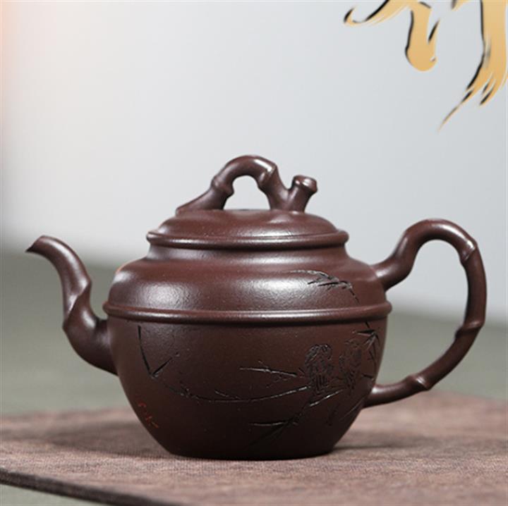 200cc原礦茄皮紫泥逍遙竹泡茶壺POT9615