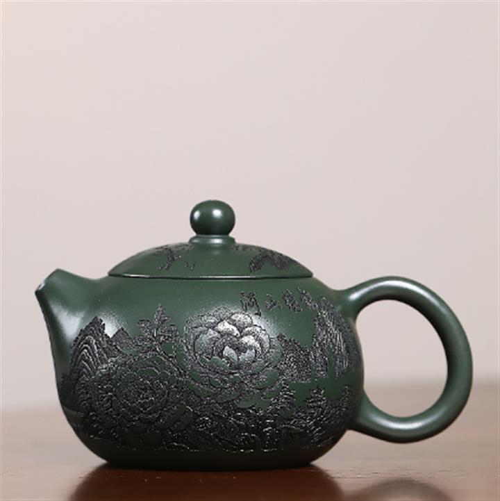 150cc原礦段泥四方雲竹薄胎茶壺POT8448