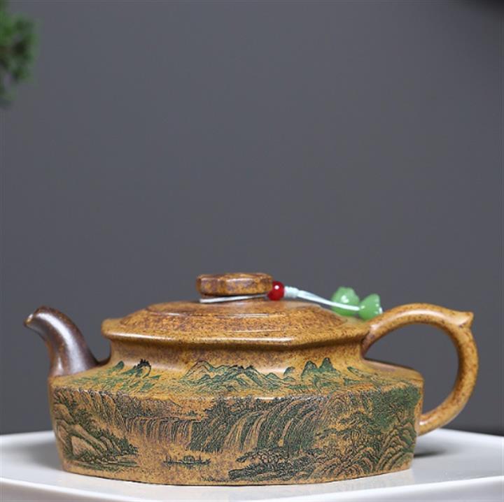 150cc原礦紫泥純手工描金婉玉茶壺POT8447