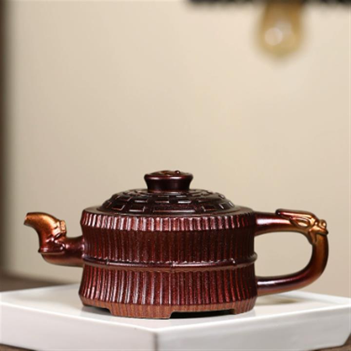 450cc原礦老紫泥琺瑯彩四方瑞獸壺POT8473