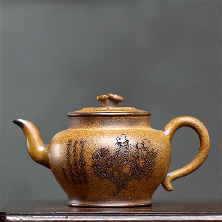 290cc玄鐵石黃黑料金刻龍馬精神茶壺POT8189