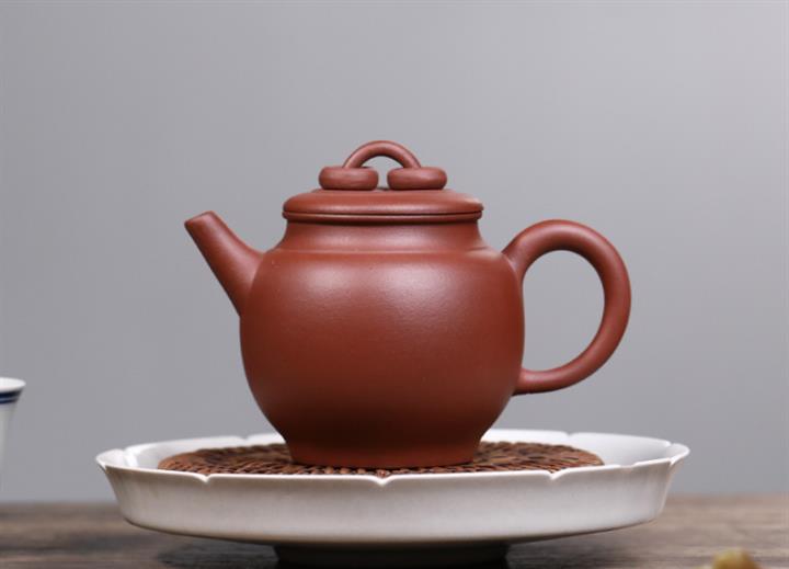 90cc原礦皺皮朱泥小品虛扁茶壺POT8375