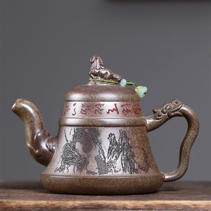 420cc原礦沈香泥柴燒墨龍逸駿茶壺POT8432