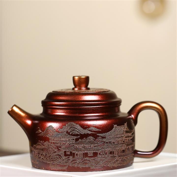 200cc原礦紫朱泥描金漢瓦茶壺POT8468