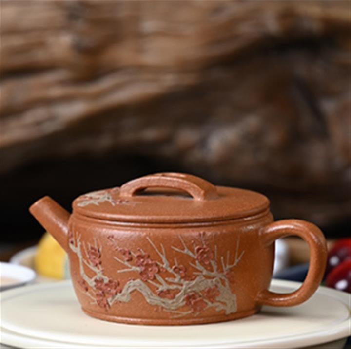 150cc原礦降坡泥堆繪梅花漢瓦茶壺POT8853