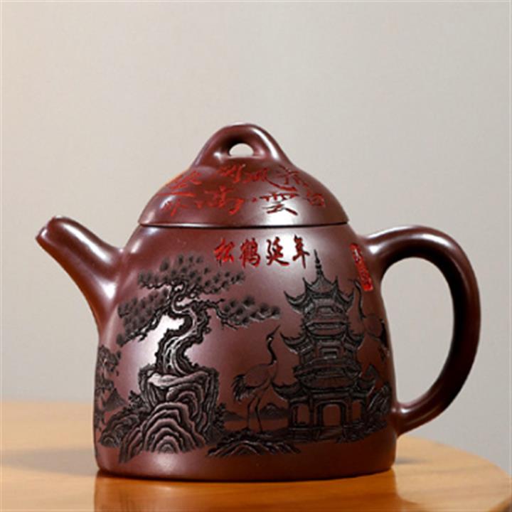 600cc原礦石紅泥松鶴延年秦權茶壺POT9020
