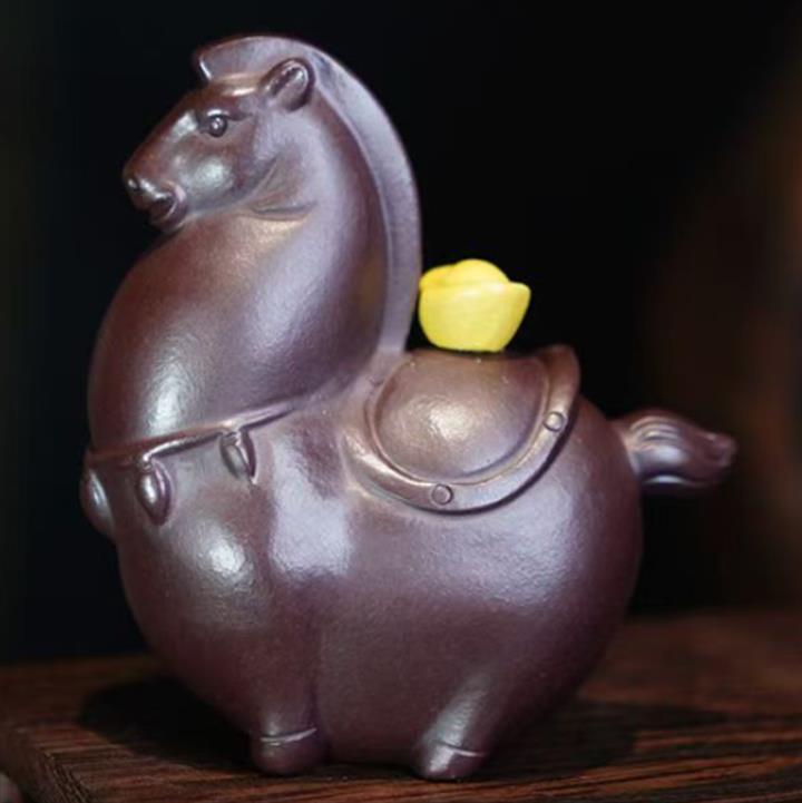 原礦紫砂馬上有錢元寶馬茶寵POT9825